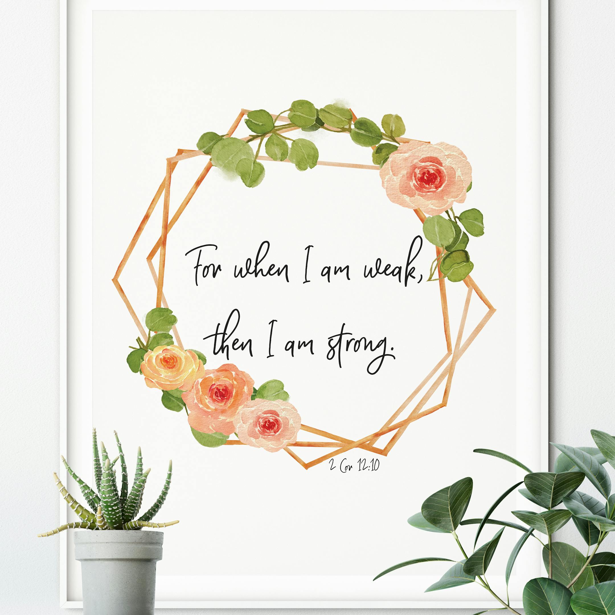 2 Corinthians 12:10 When I Am Weak I Am Strong Bible Verse Print