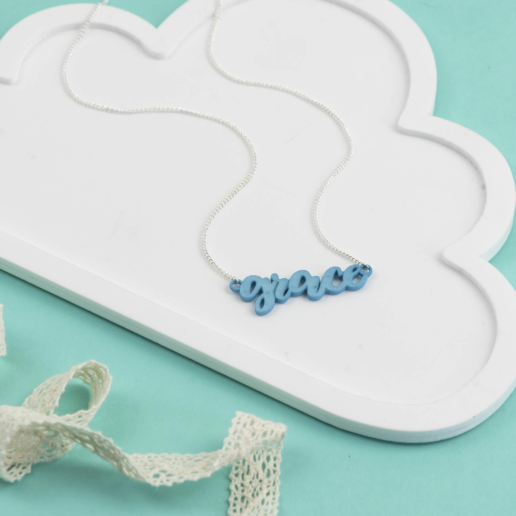 3D printed nylon Grace word pendant inspired by 2 Corinthians 12:9
