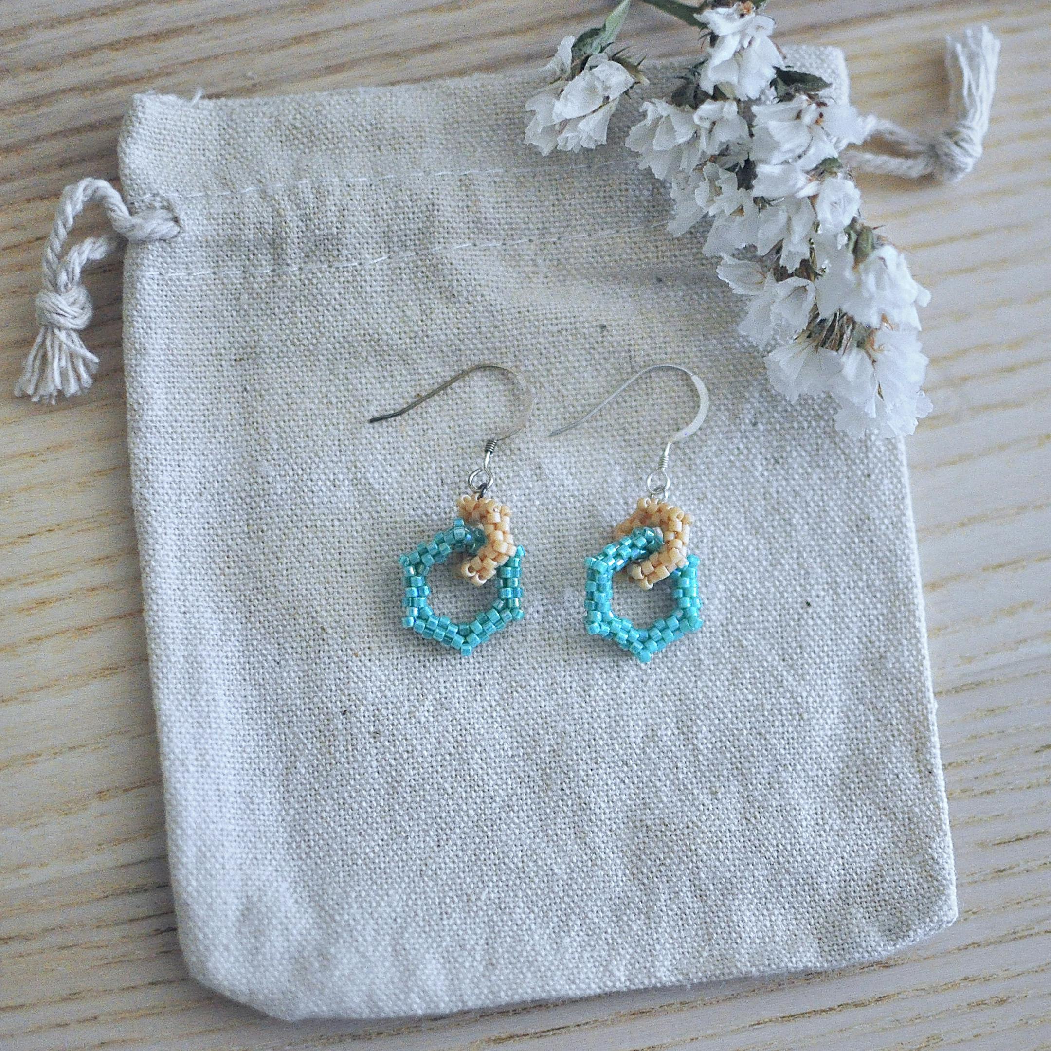 Delicately handmade from tiny Japanese glass seed beads, and stitched together with needle and thread. Earrings hooks are quality silver-plated.