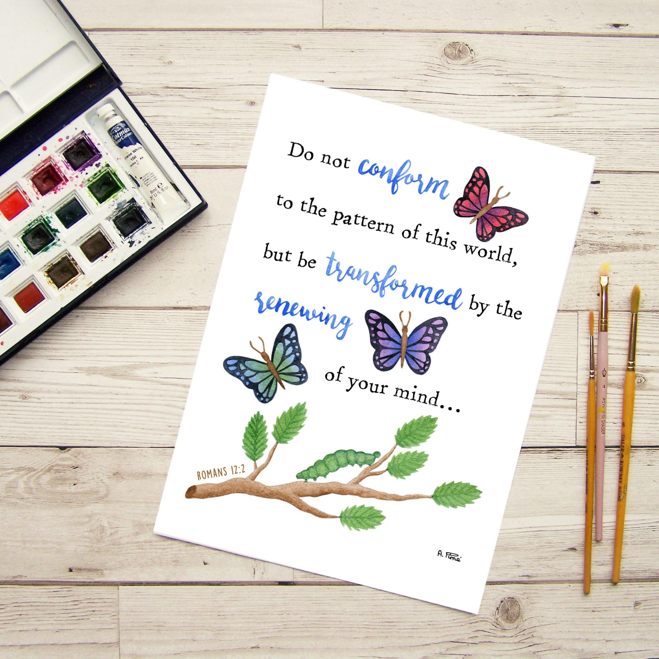 Do not conform to the pattern of this world... (Romans 12:2) - A4 Watercolour Art Print with Bible verse