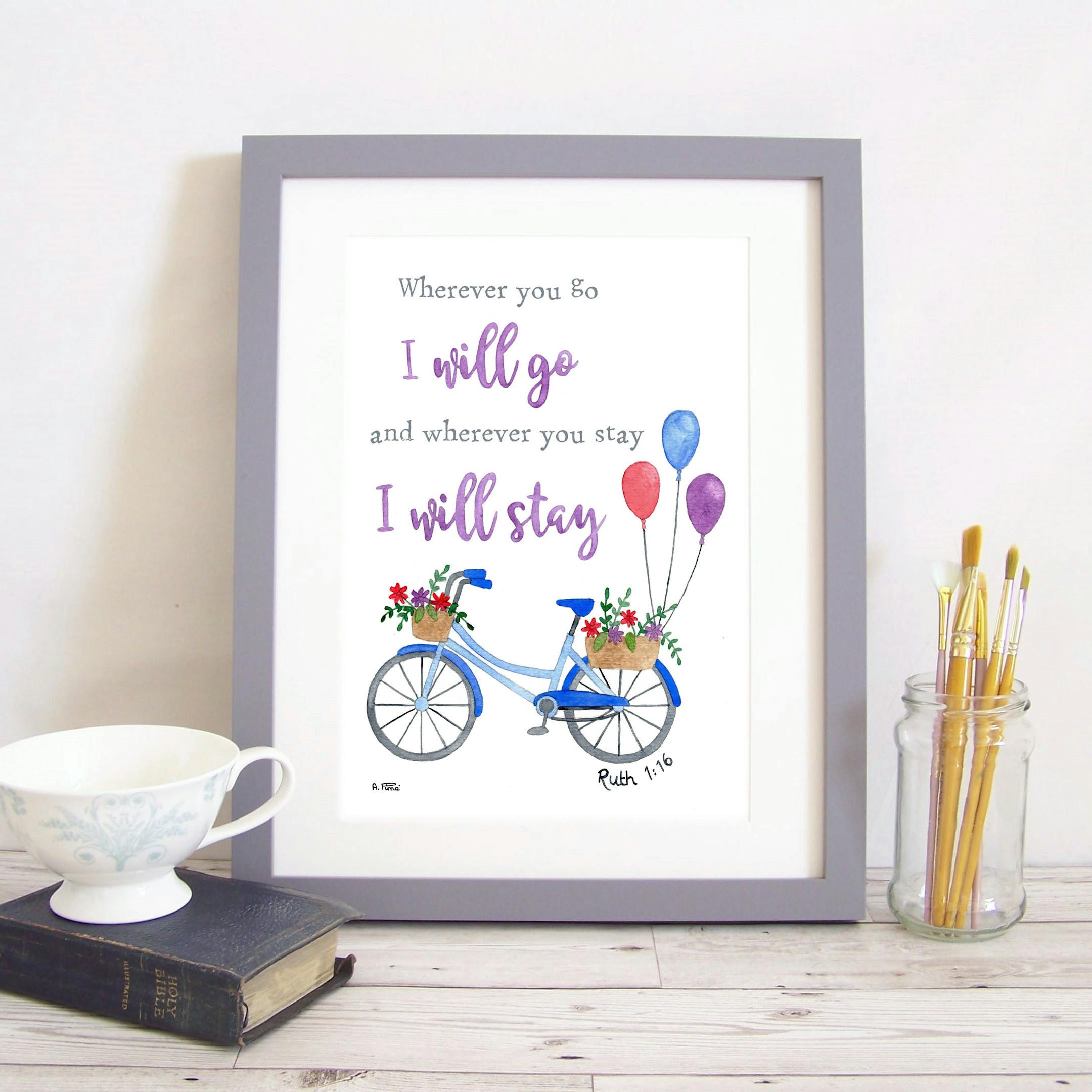 Wherever you go I will go, wherever you stay I will stay (Ruth 1:16) - A4 Watercolour Art Print with Bible verse
