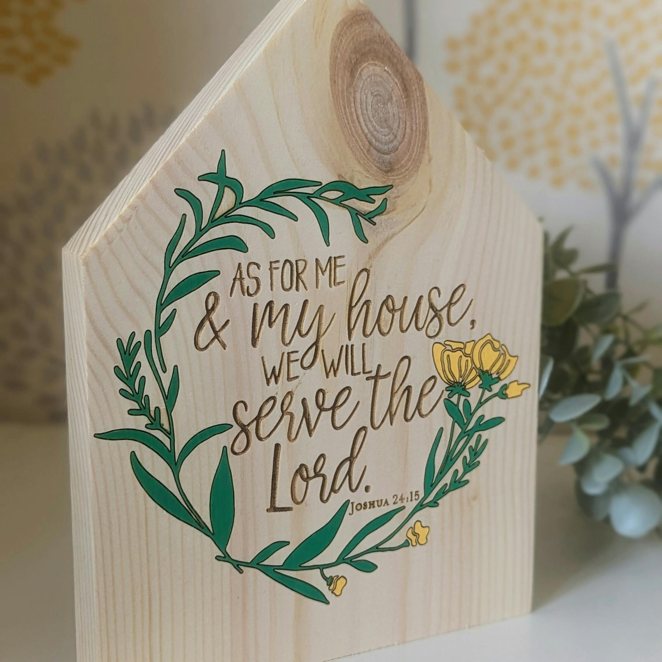 At 230x170x20mm, this Standing House is the ideal size to grace your mantel, shelf, or tabletop. Its presence is more than just decorative; it carries a profound message inspired by Joshua 24:15, a reminder of faith, unity, and the importance of one's spiritual journey.