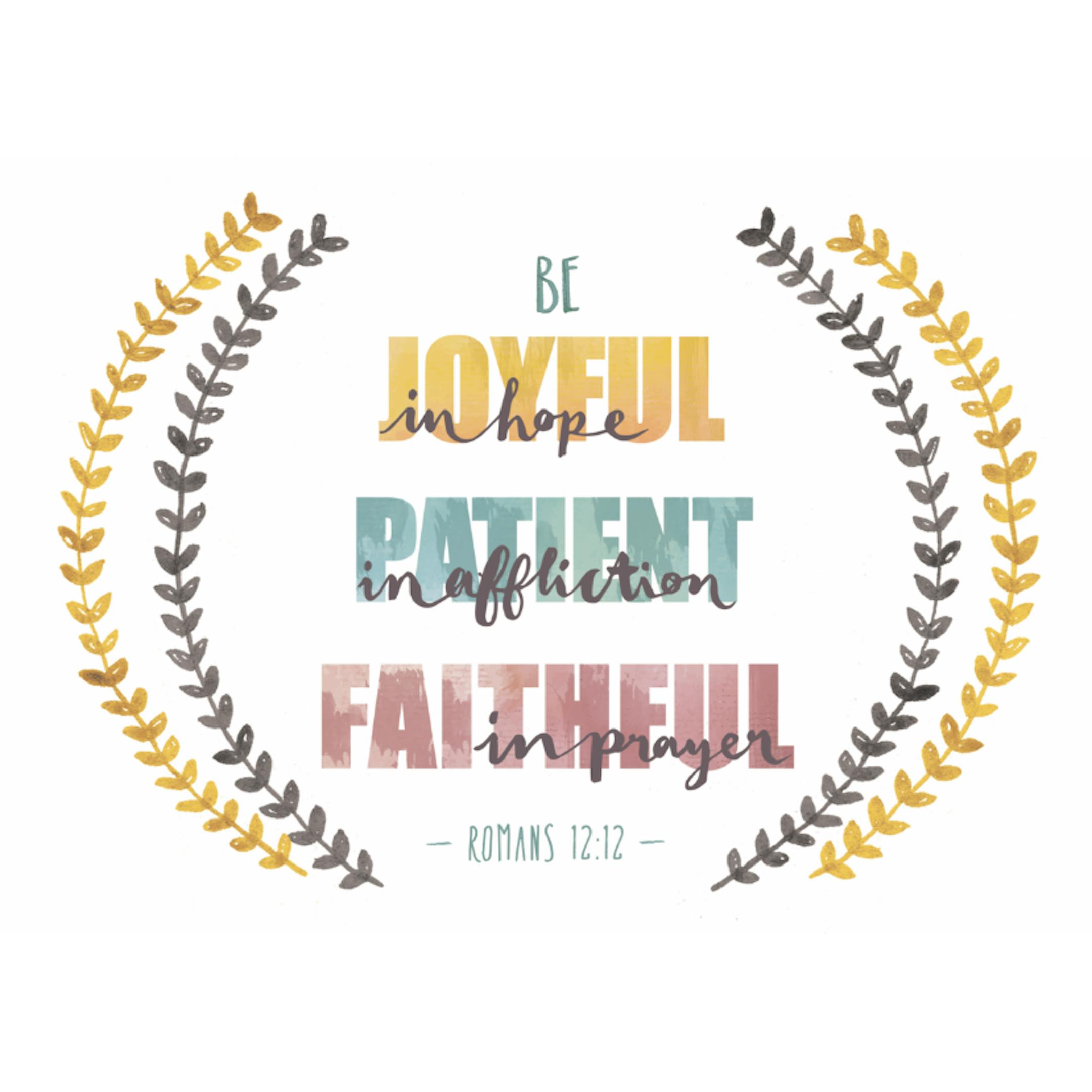 A unique print and helpful challenge of Romans 12v12: ‘Be joyful in hope, patient in affliction, faithful in prayer’