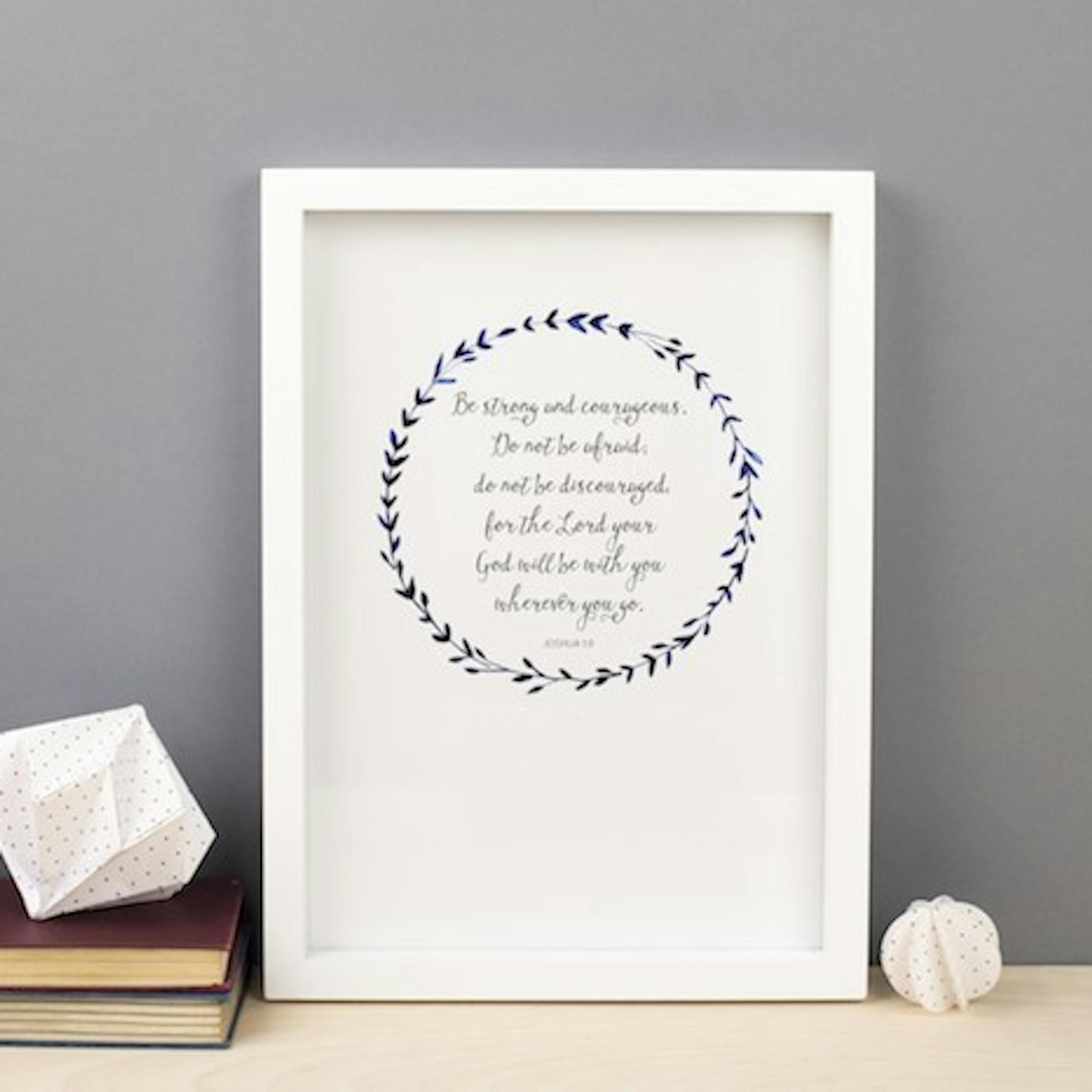 - one unframed, A4, 350gsm print on silk card stock featuring Joshua 1:9