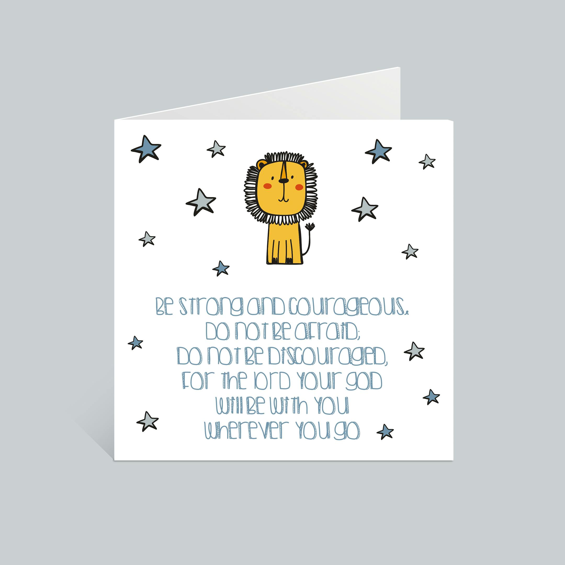 A cute card with amazing encouraging words from our God - as He commands us to be, strong and courageous. Do not be afraid; do not be discouraged, for the Lord your God will be with you wherever you go.”