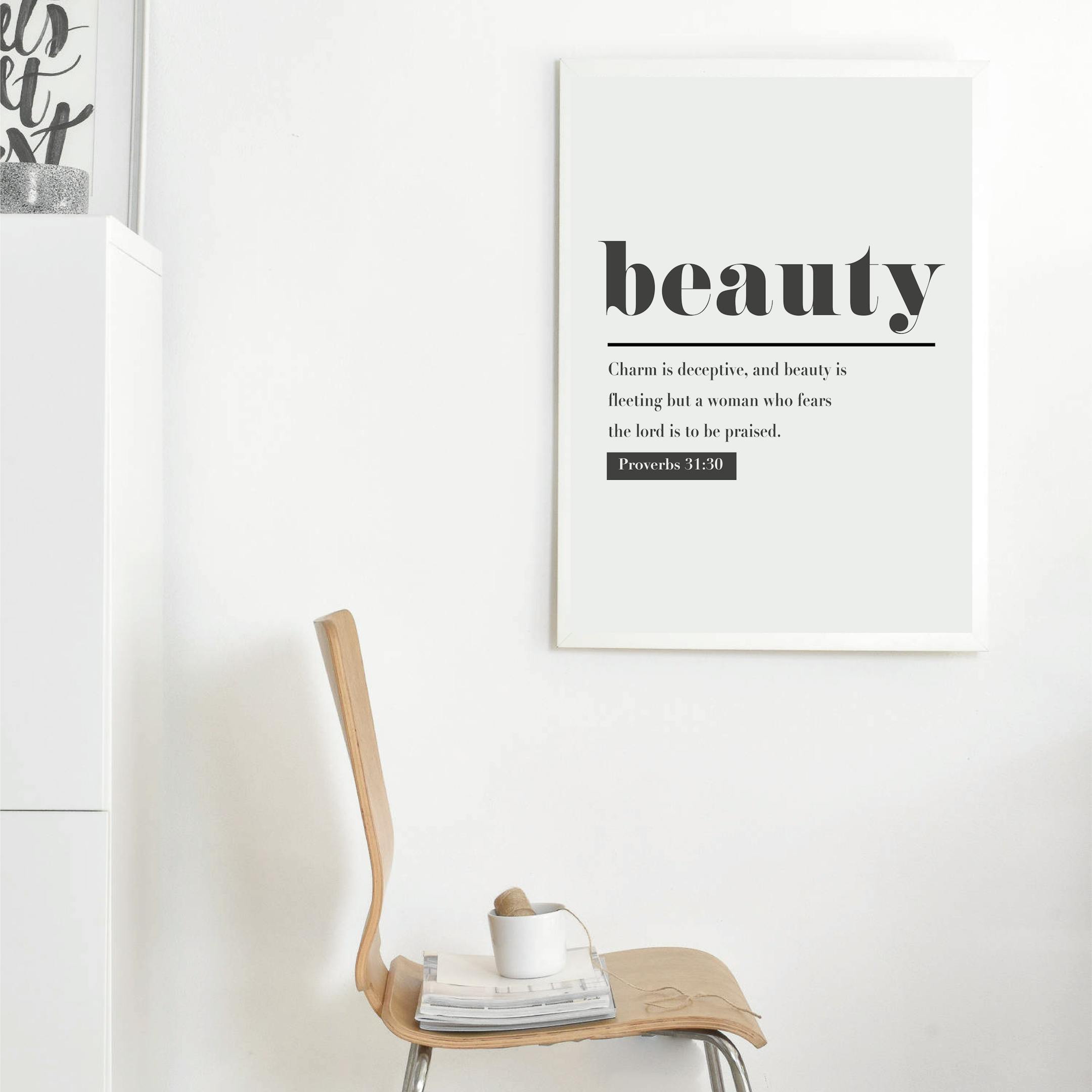 "Charm is deceptive and beauty is fleeting, but a woman who fears the Lord is to be praised" Proverbs 31:30 | 'Beauty' A contemporary design.