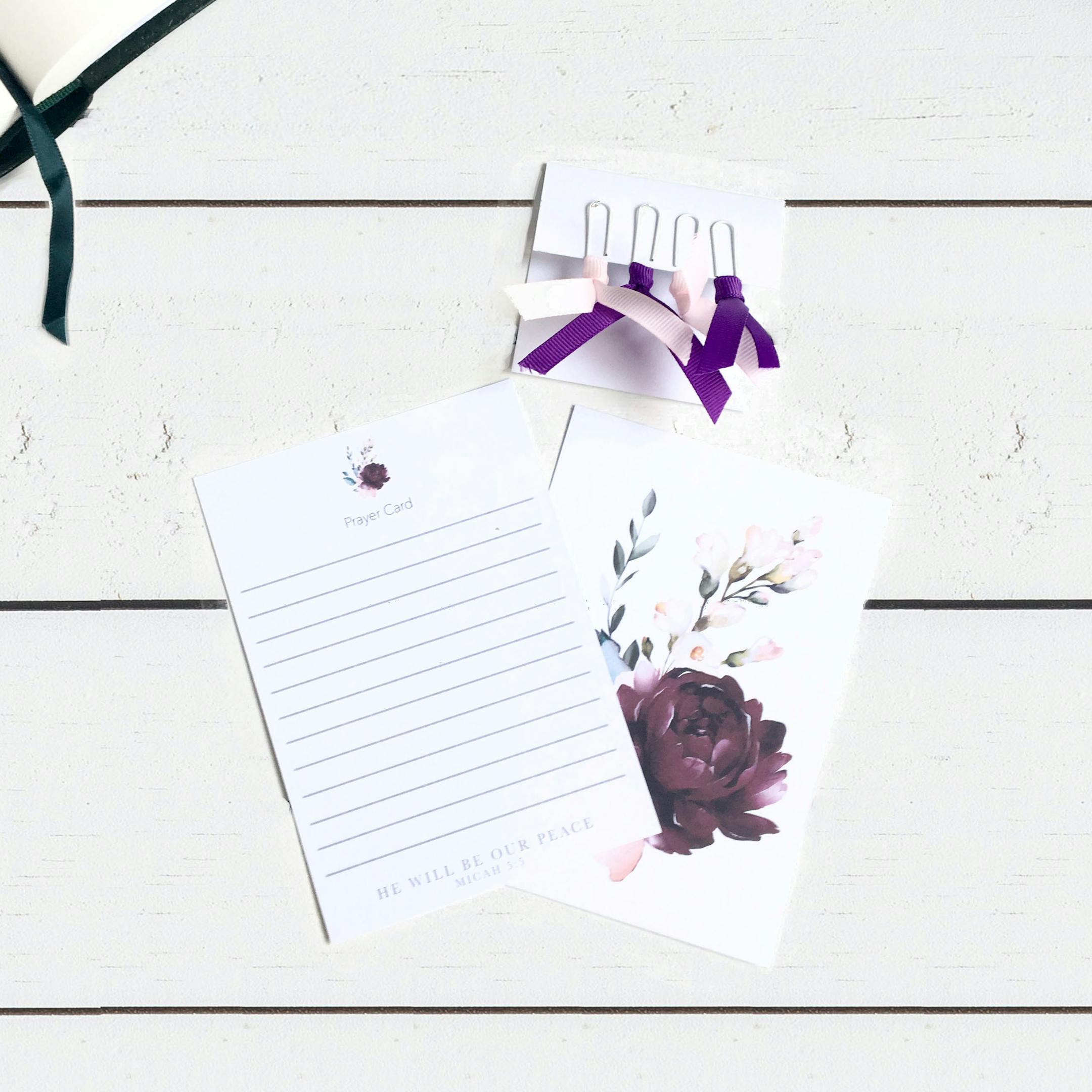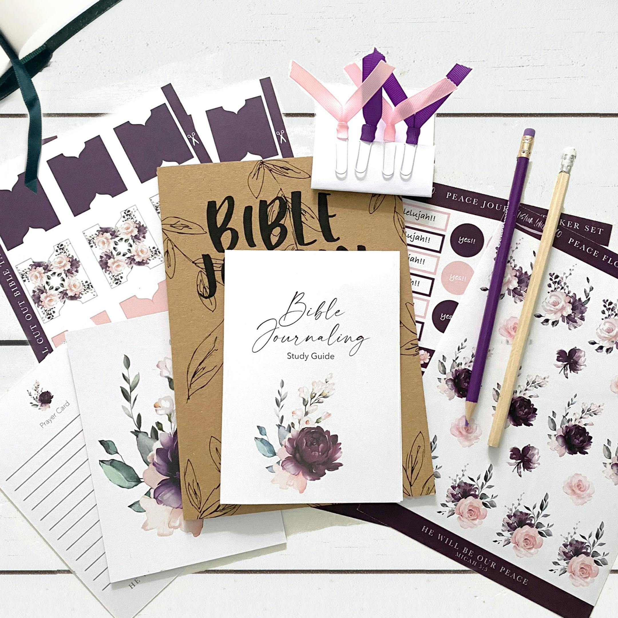 A beautiful Bible Journaling Starter Kit featuring a gorgeous purple and pink floral design.