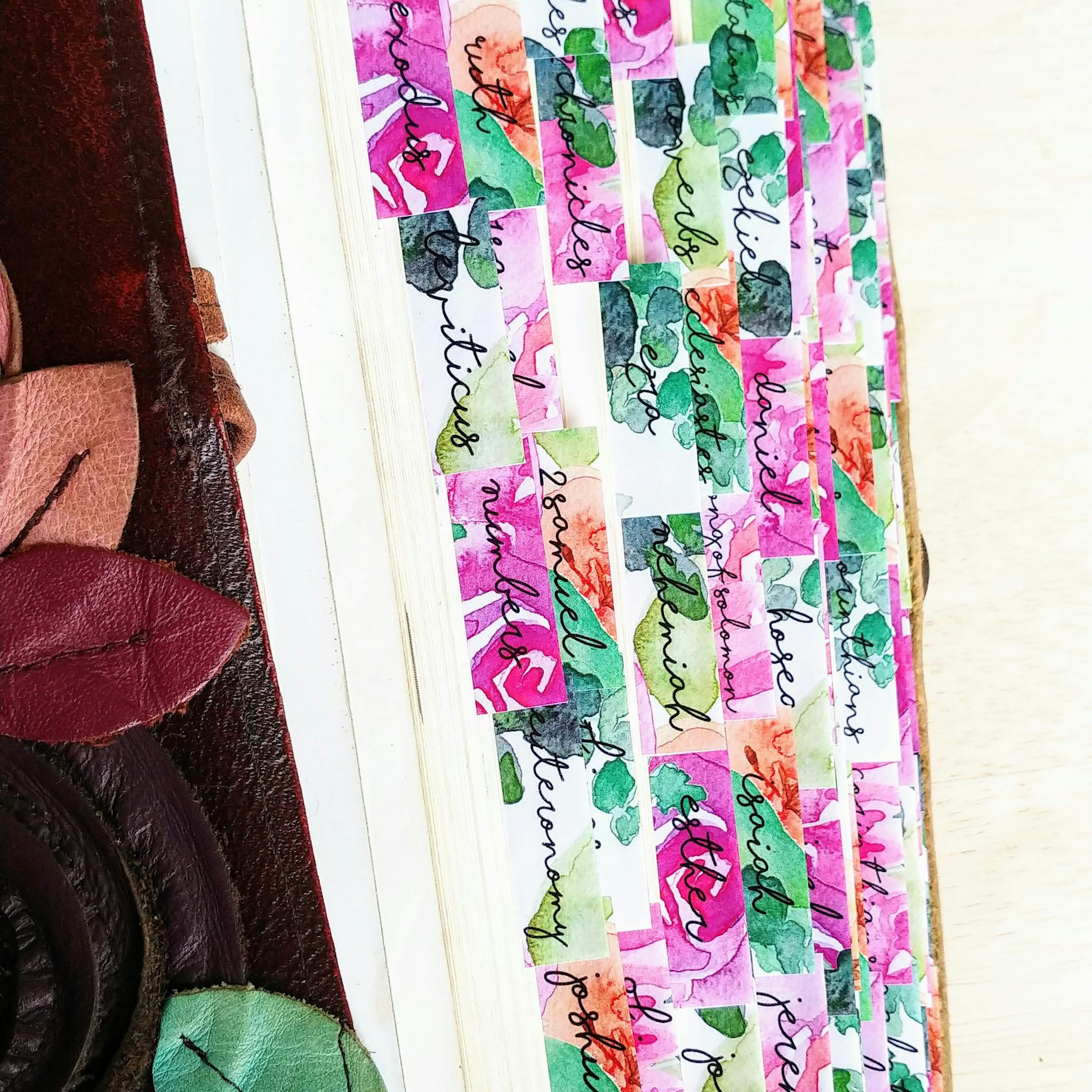 These floral watercolour bible tabs provide a beautiful and practical way of finding your way around the books of the bible.