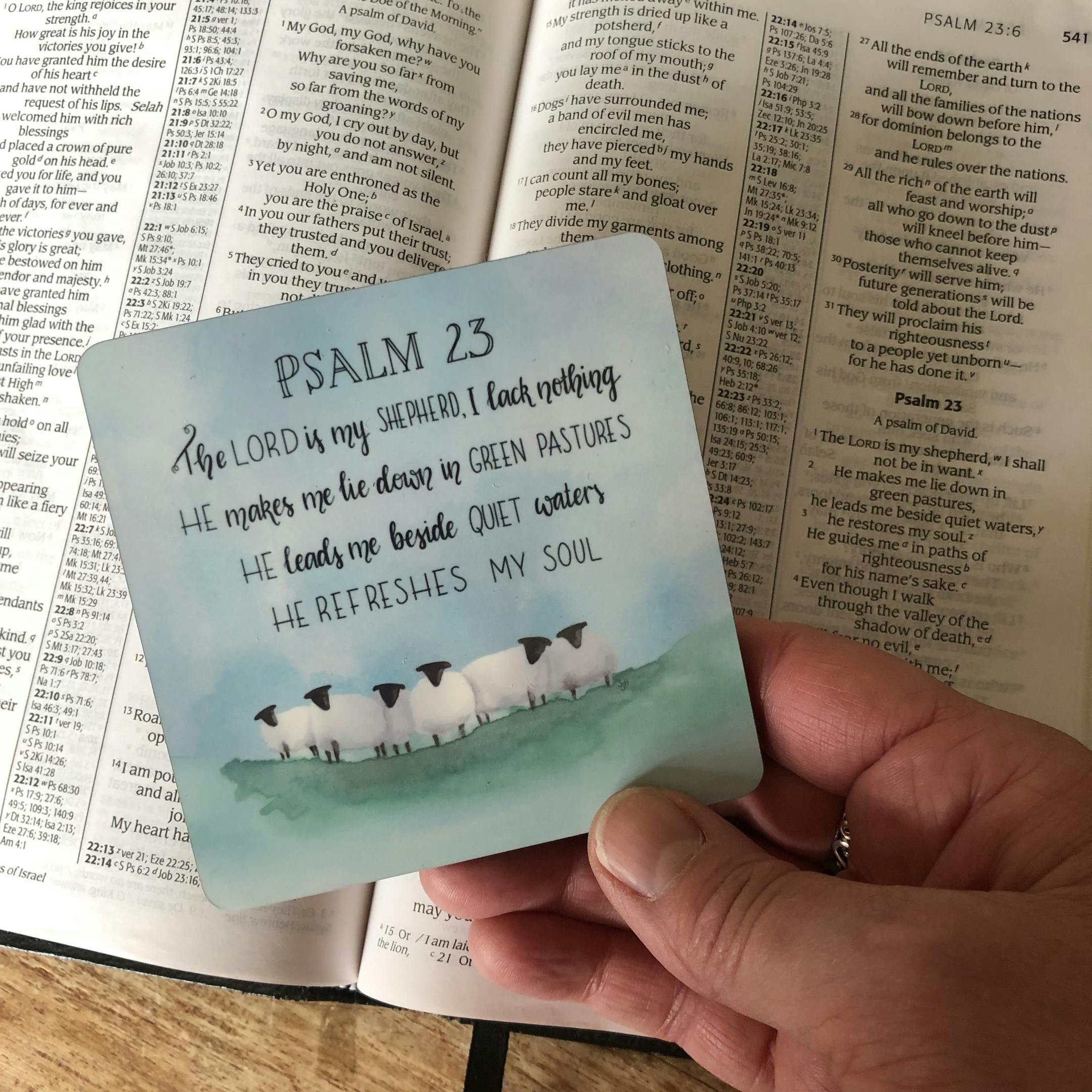 Bible verse coaster. Psalm 23 The Lord is my shepherd I lack nothing... He refreshes my soul.