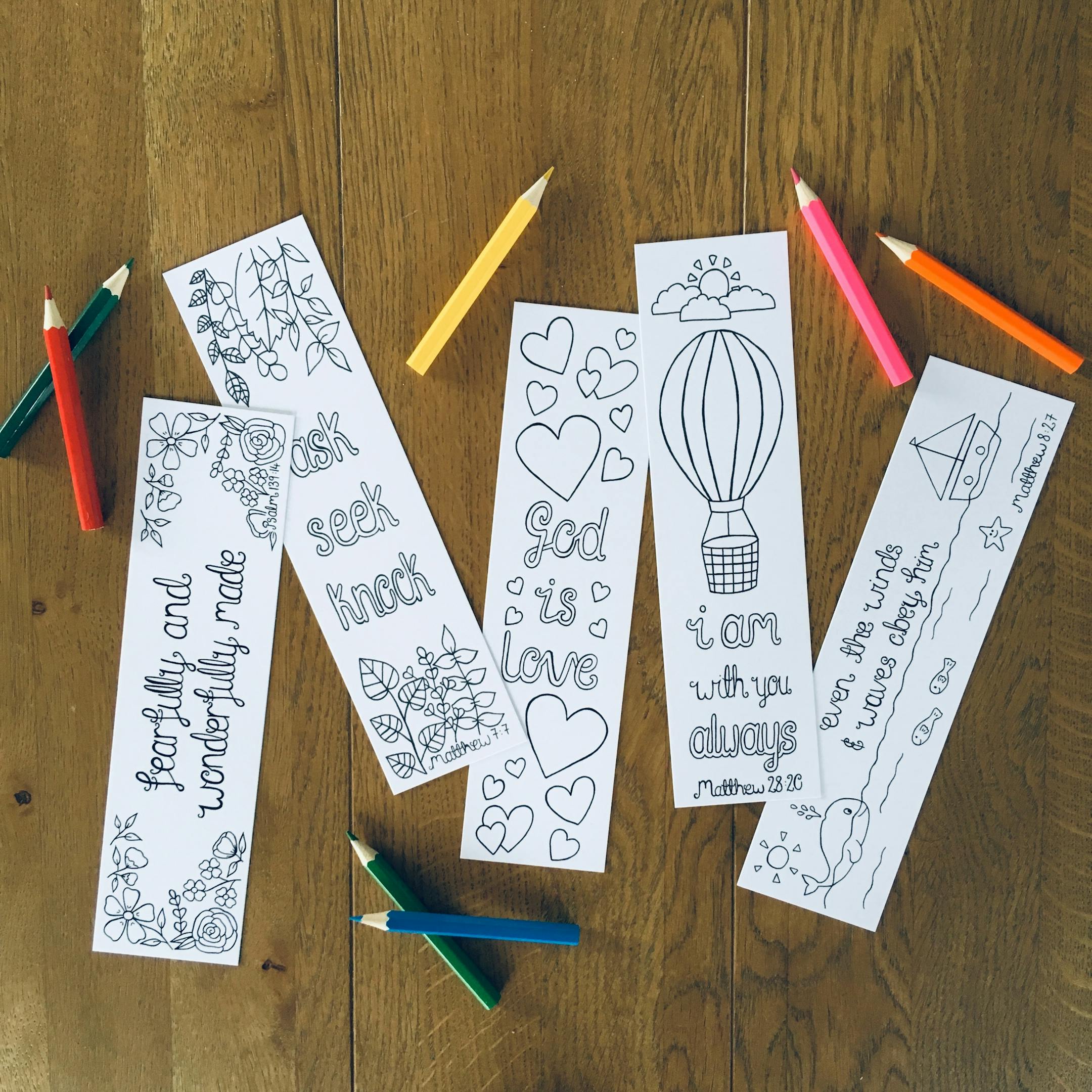 These hand drawn colouring in bookmarks would make for a unique gift for a friend or a fun treat for yourself, each bookmark has a different Bible verse drawn into the design.