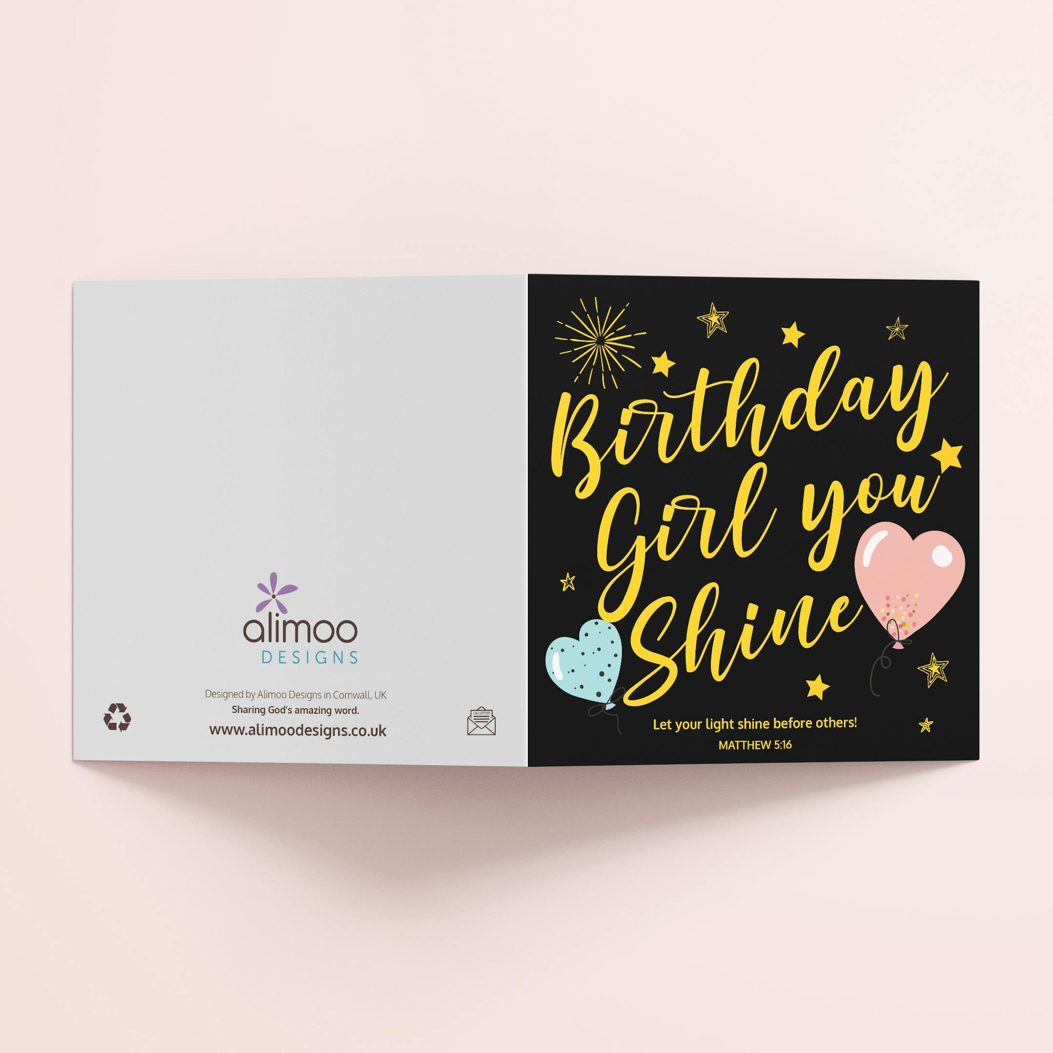 Birthday Girl, You Shine Birthday Card (Matthew 5: 16)
