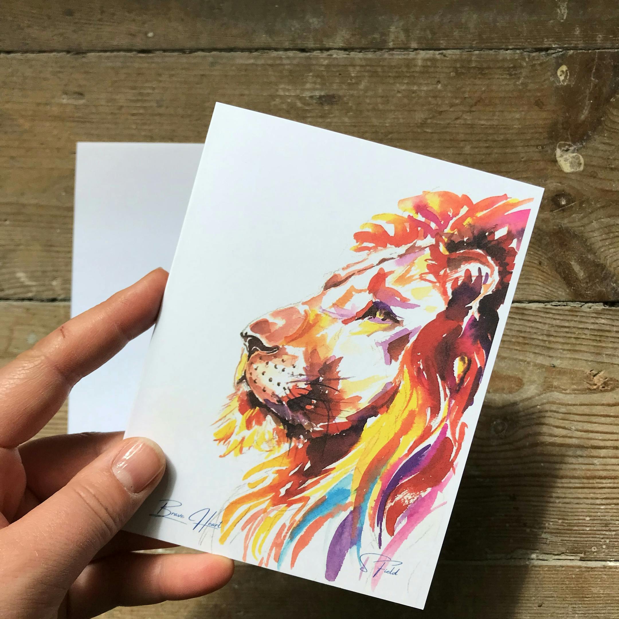 Beautiful Lion 'Brave Heart' A5 print from an original watercolour painting that was inspired by Jesus, our Lion of Judah & Aslan in CS lewis Chronicles of Narnia. I felt it was a reminder of our courage, strength and endurance comes from Jesus. He is the Strength of our hearts.