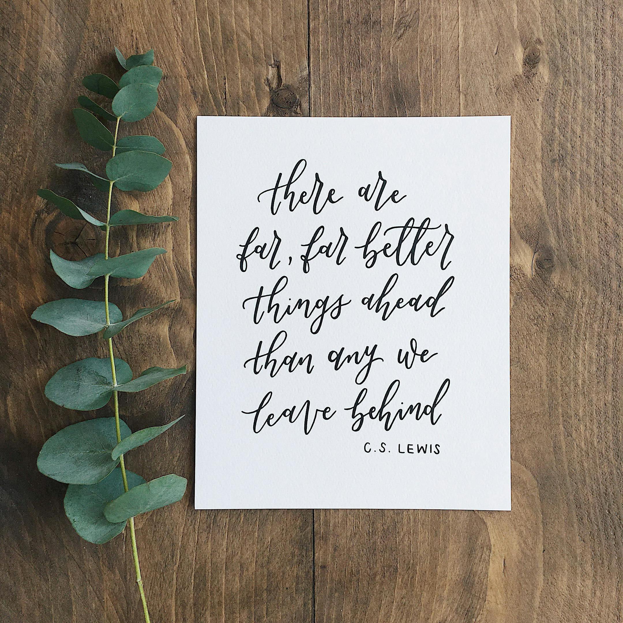 This hand lettered print of the C.S. Lewis quote 'There are far, far better things ahead than any we leave behind' is the perfect addition to any house!