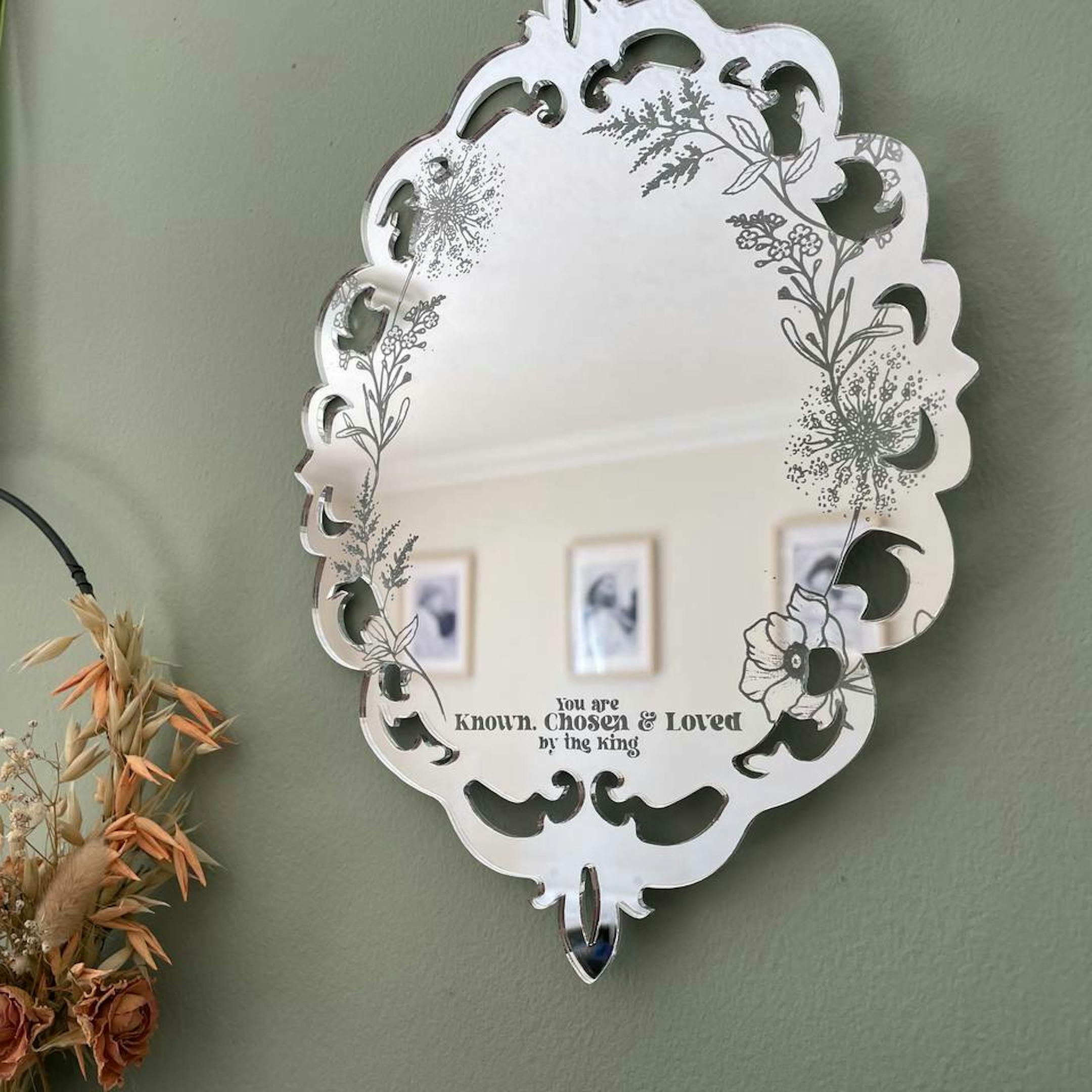 Decorate your home with Engraved - You are Known, Chosen & Loved by the King wall mirror. Perfect reminder to add to your home
