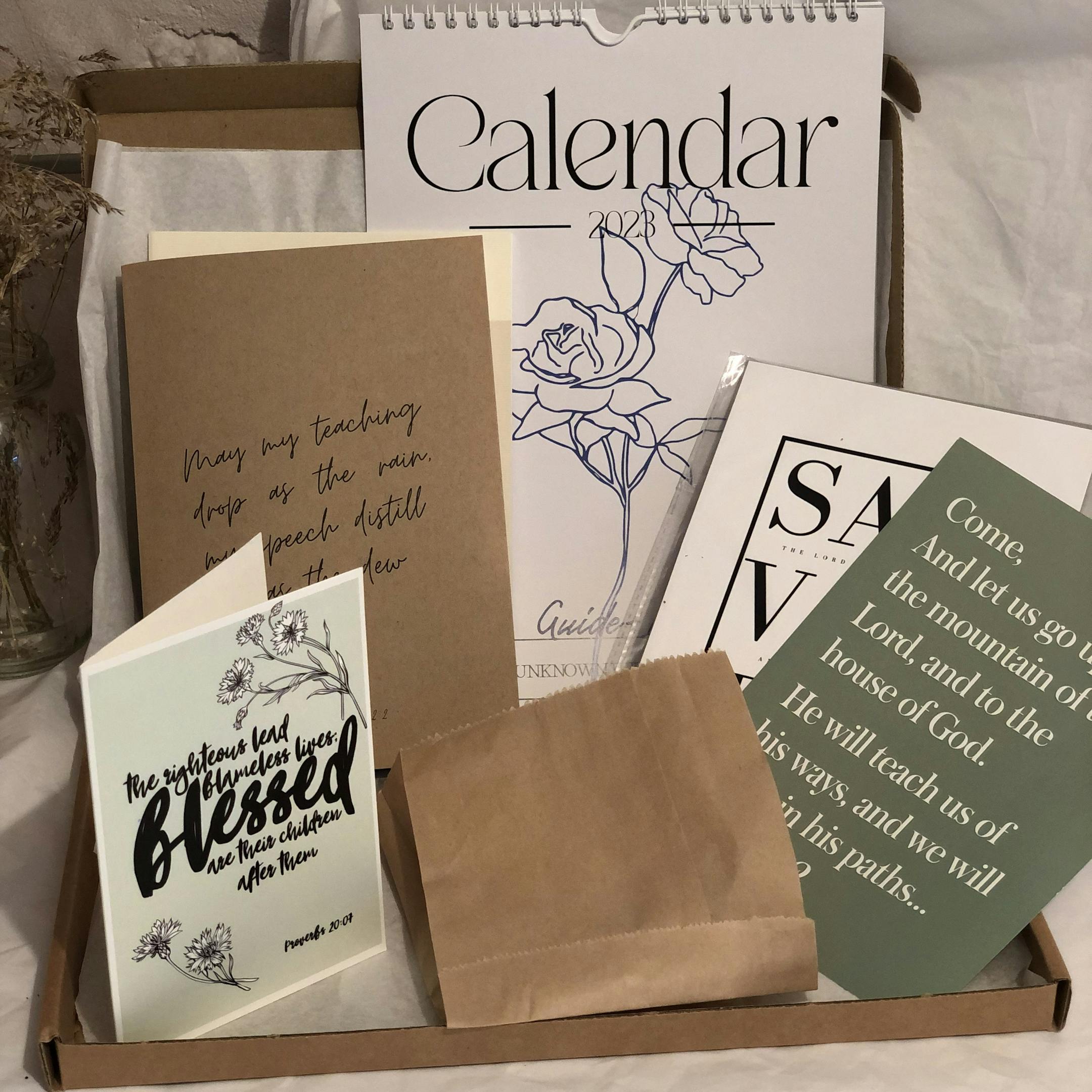 - an A5 saddle stitched notebook and an A5 1 Corinthians 13 Print, made on 220gsm Matte Inkjet Photo FSC Printing Paper.