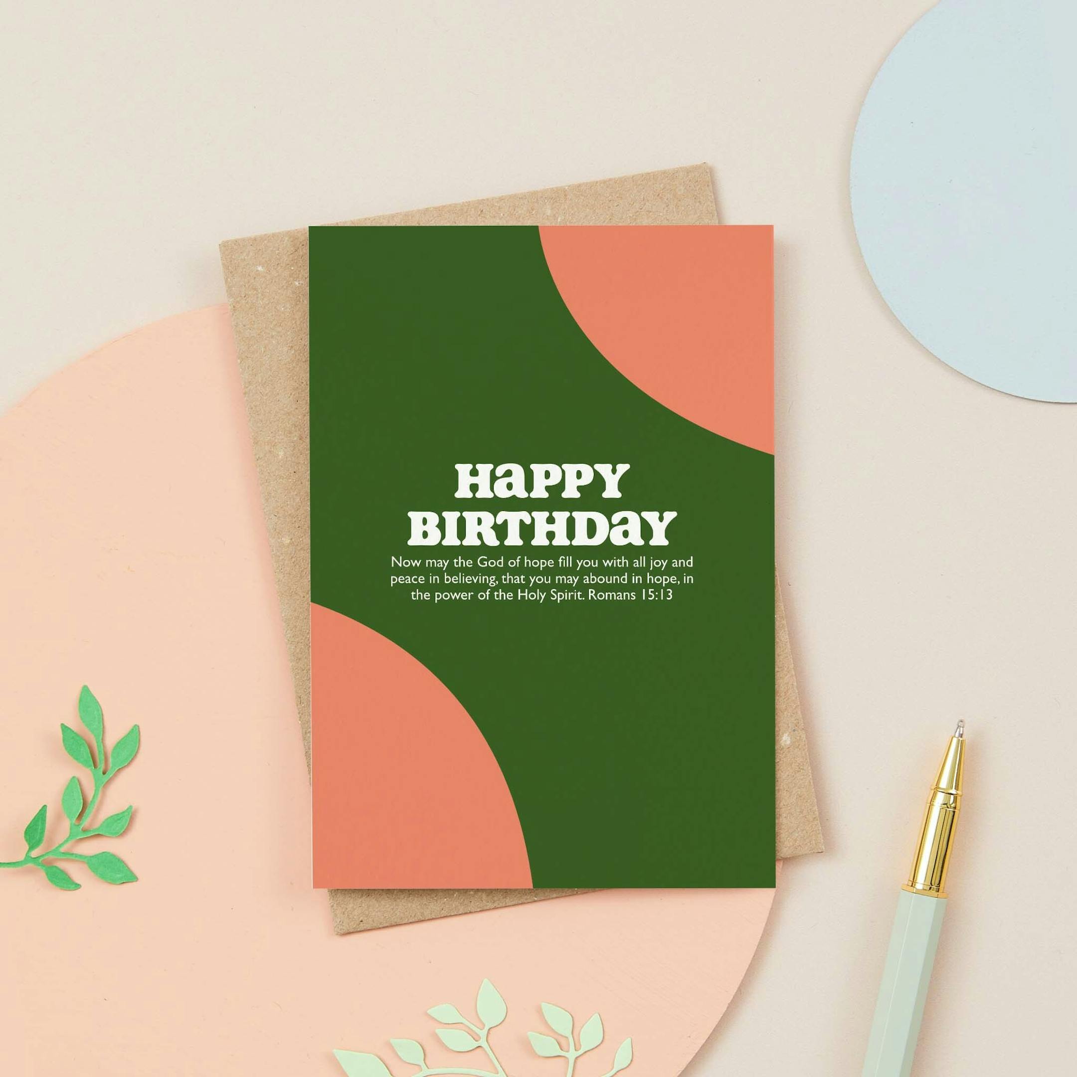Celebrate a birthday with this contemporary sustainably made card featuring a two-tone colour block design and words from Romans 15.