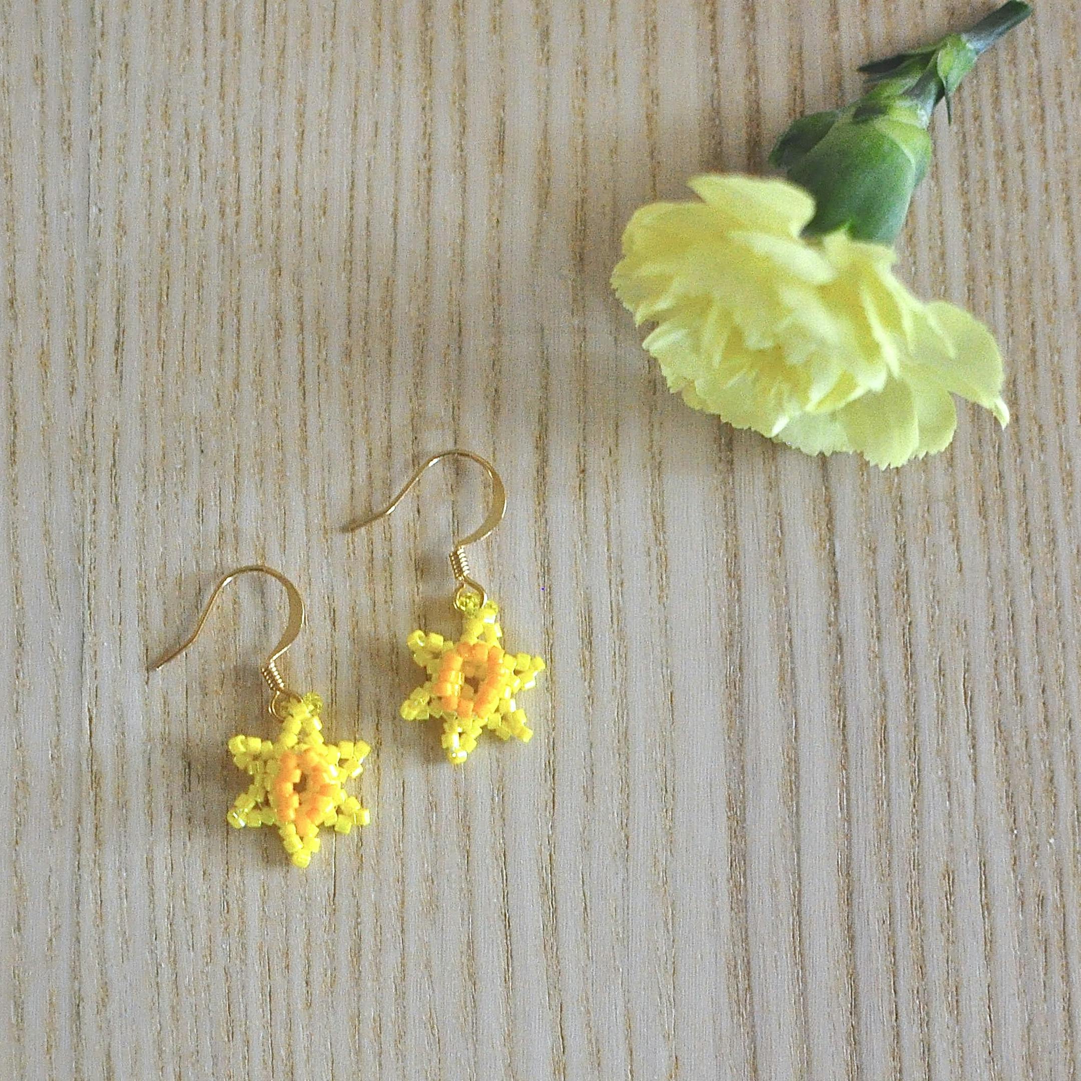 100% delicately handmade by me from tiny Japanese glass seed beads and stitched together with needle and thread. Earring hooks are quality gold-plated.