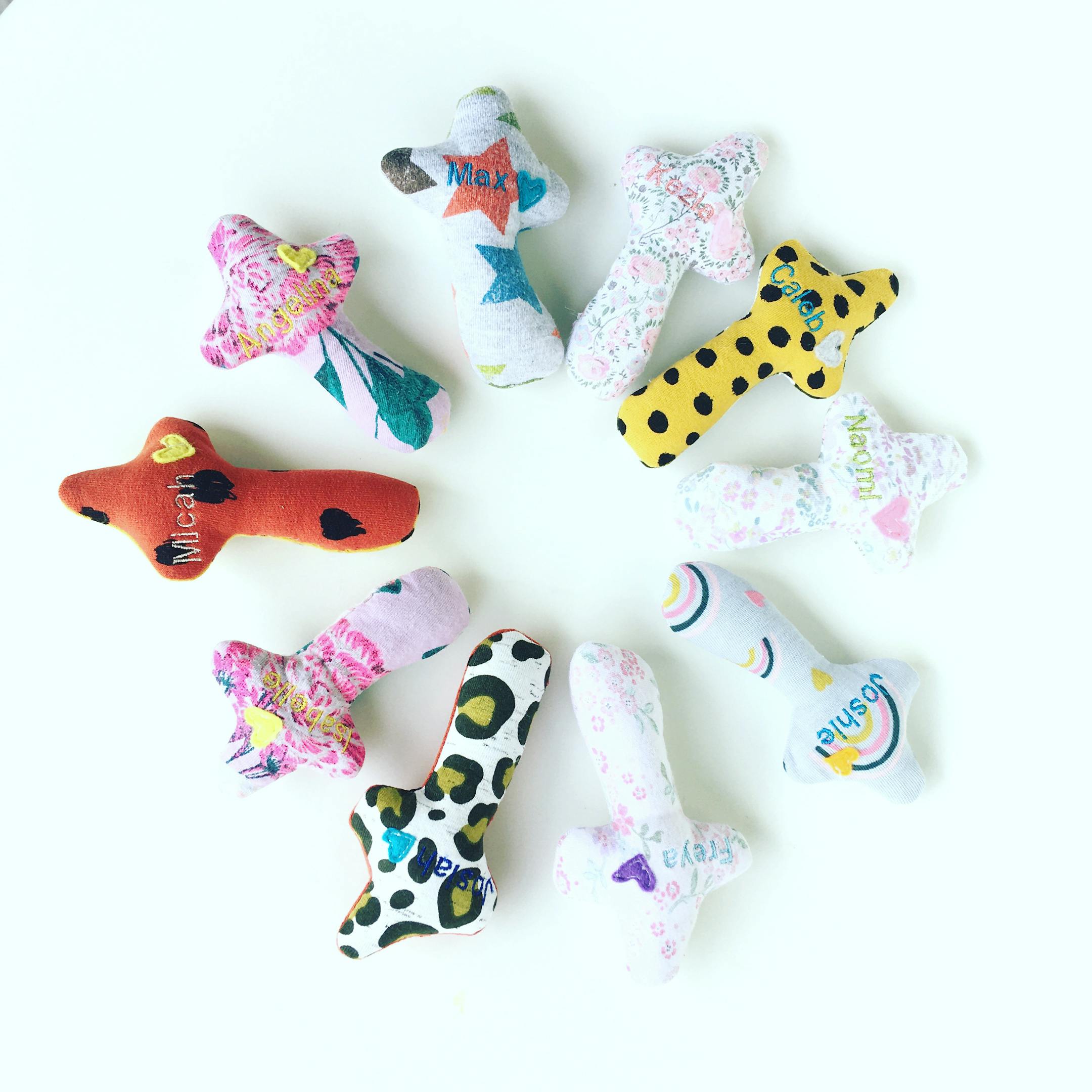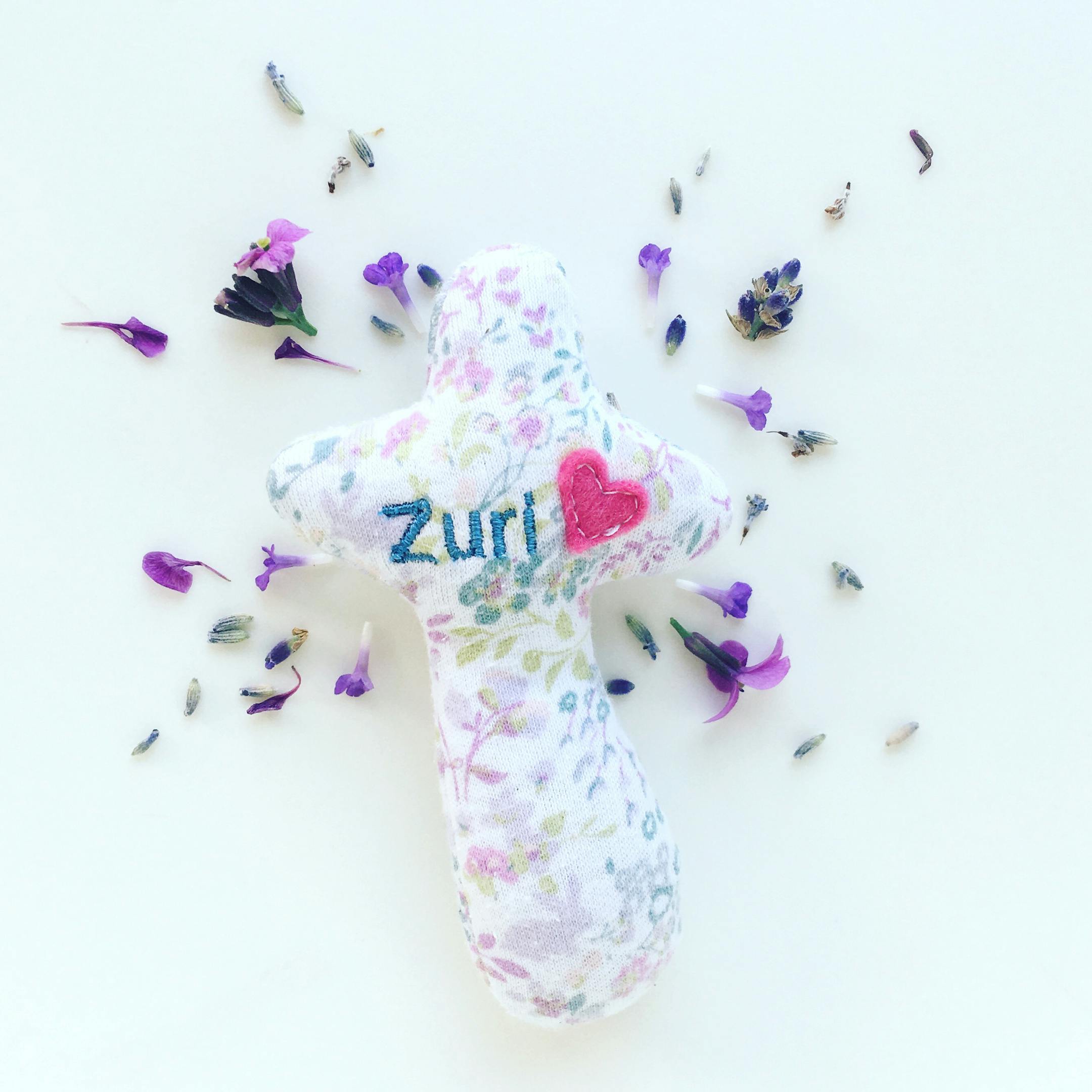 Fabric Crosses made with love and filled with a sprinkling of dried lavender and super soft stuffing.