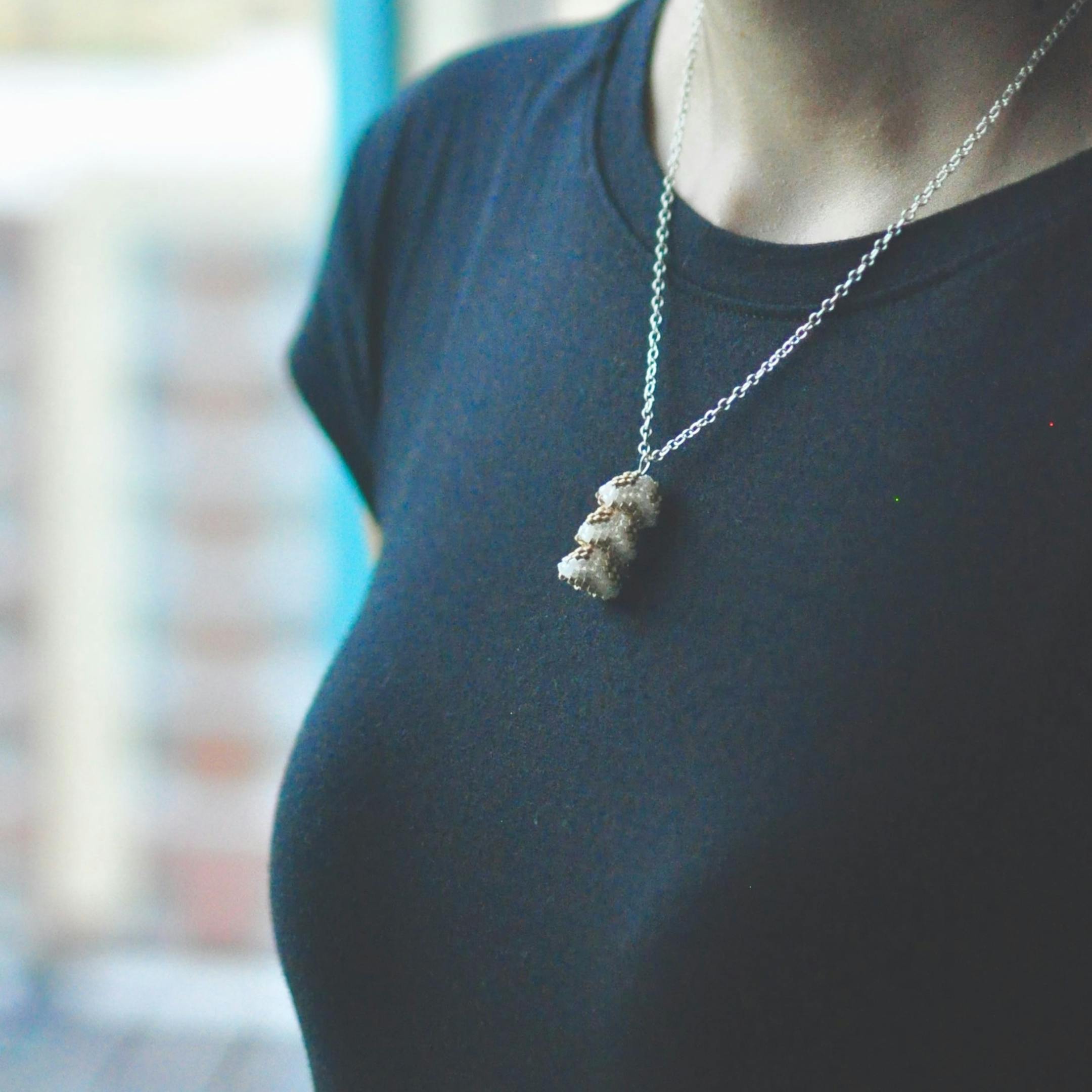 Delicately handmade from tiny Japanese glass seed beads, and stitched together with needle and thread. Necklace chain and findings are quality silver-plated.