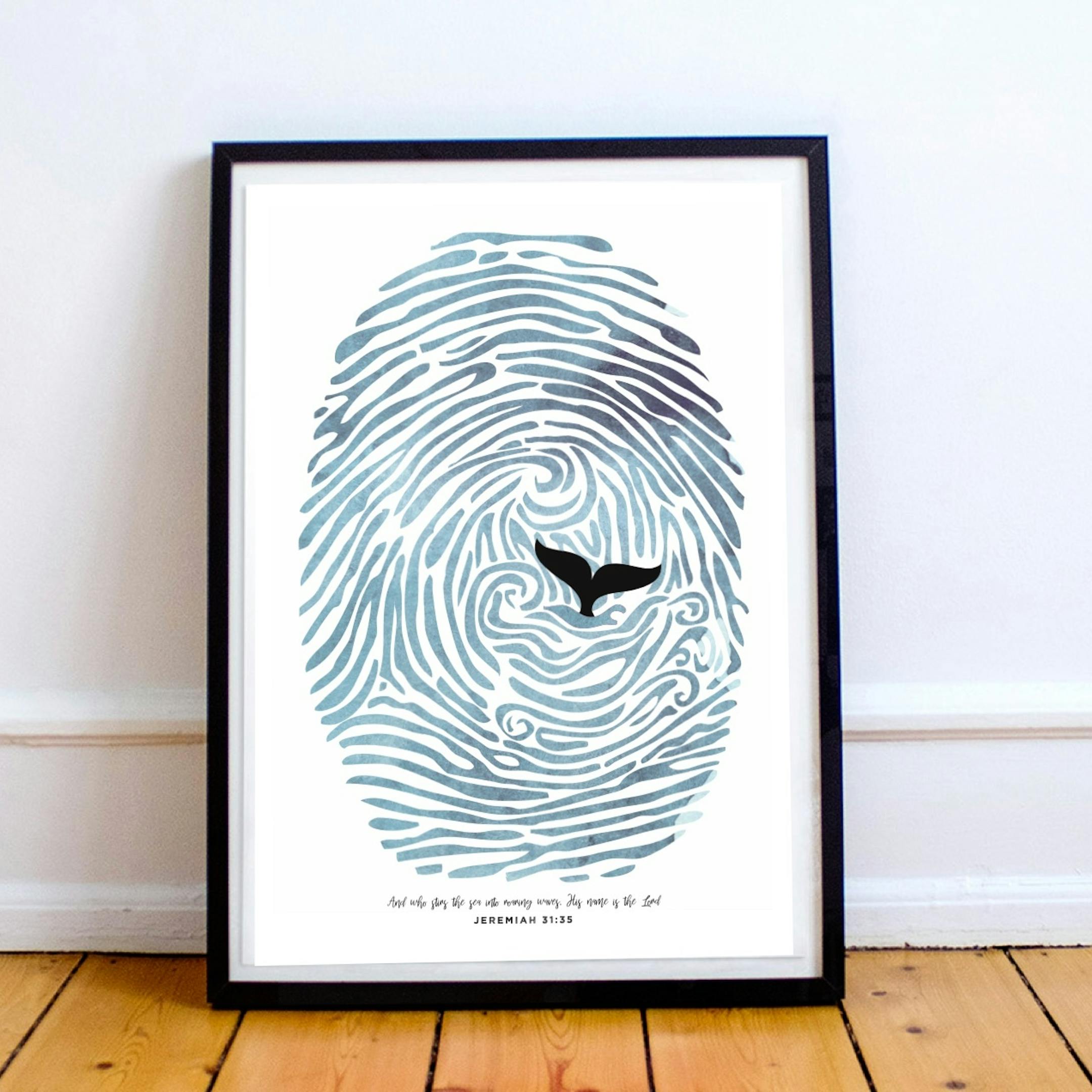 Bible Verse Fingerprint Jeremiah 31v35 - Water Christian Print - FREE UK DELIVERY