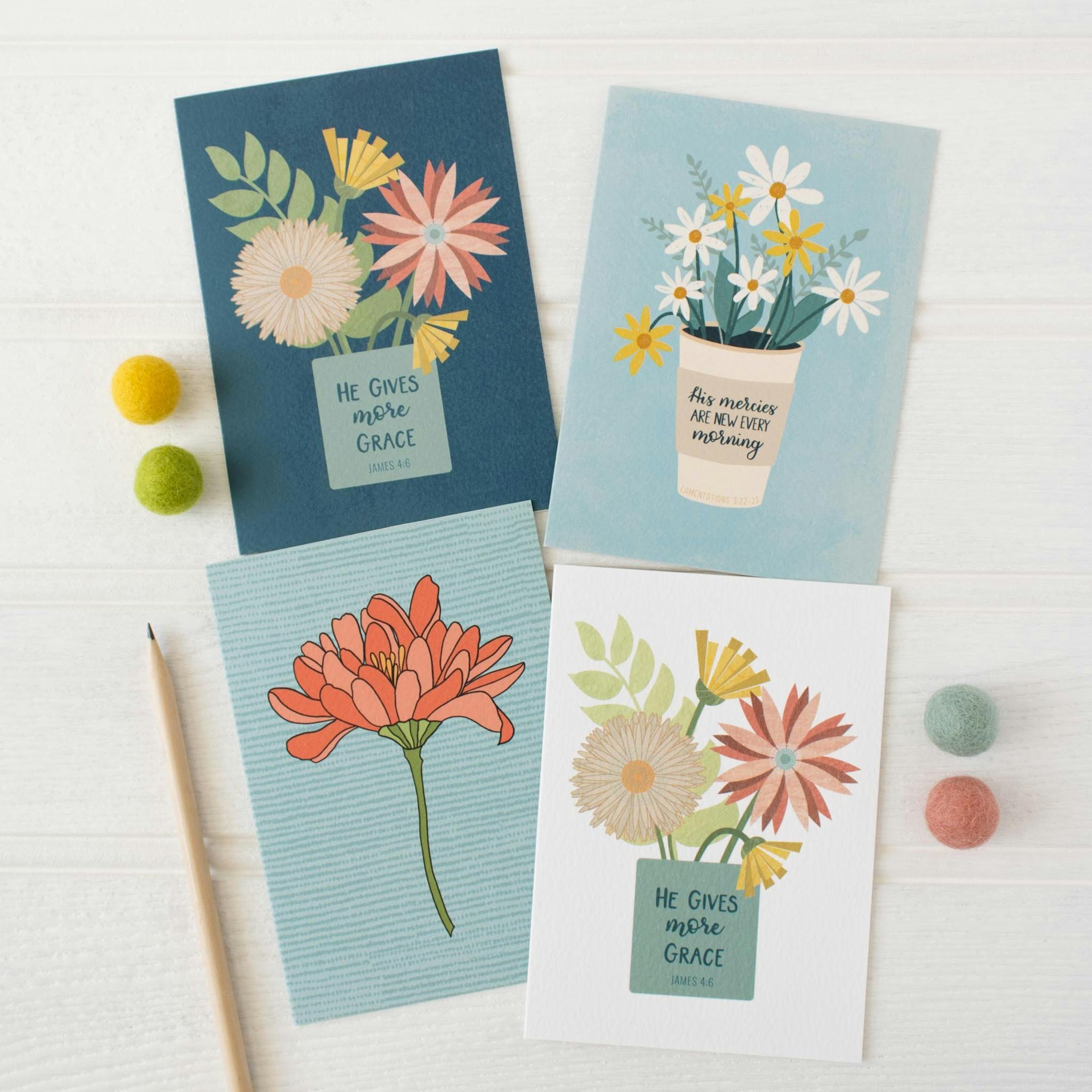 This set of floral encouragement cards is a great way to hearten those you love in their faith. It includes 4 cards with hand lettering and illustration.