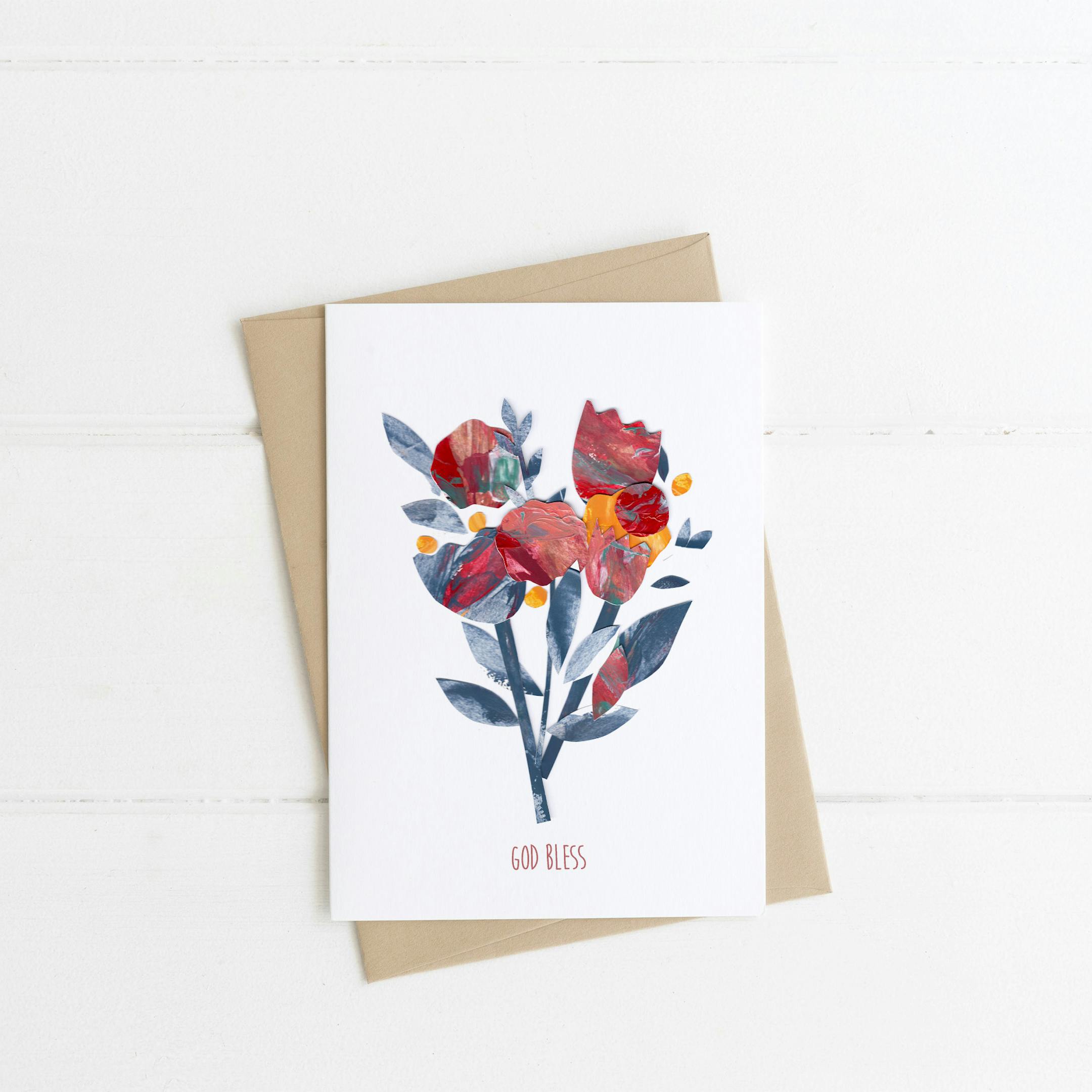 llustrated floral design with wording 'God Bless'. The card is printed on 300gsm white card, the card is blank inside to personalise with your own message
