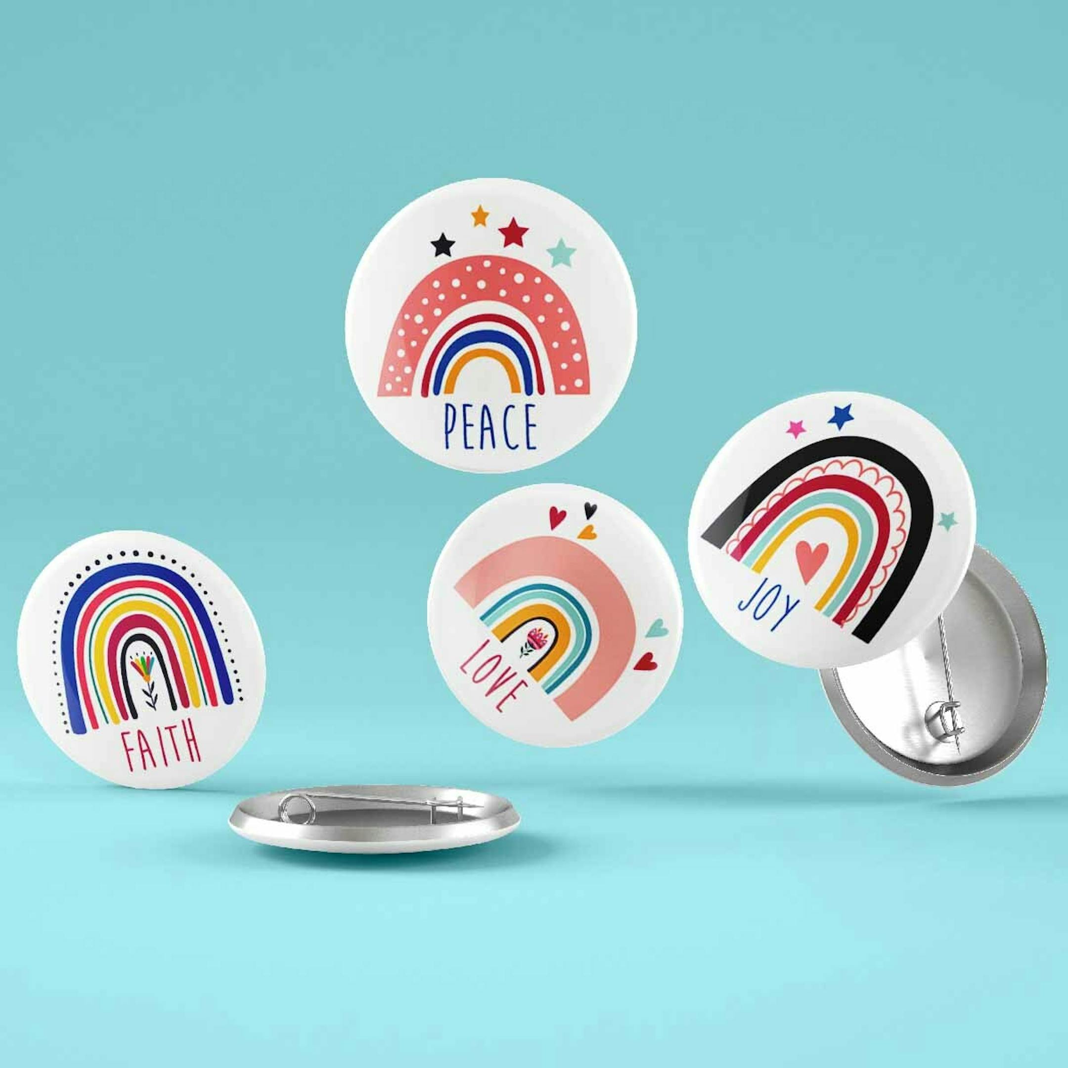 Cute set of rainbow badges, each one depicting a rainbow and a promise from God.