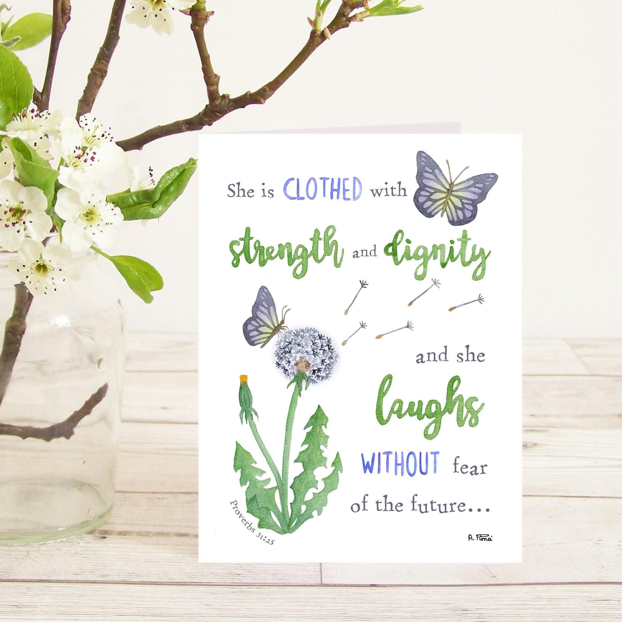 She is clothed with strength and dignity and she laughs without fear of the future (Proverbs 31:25) - Greetings Card