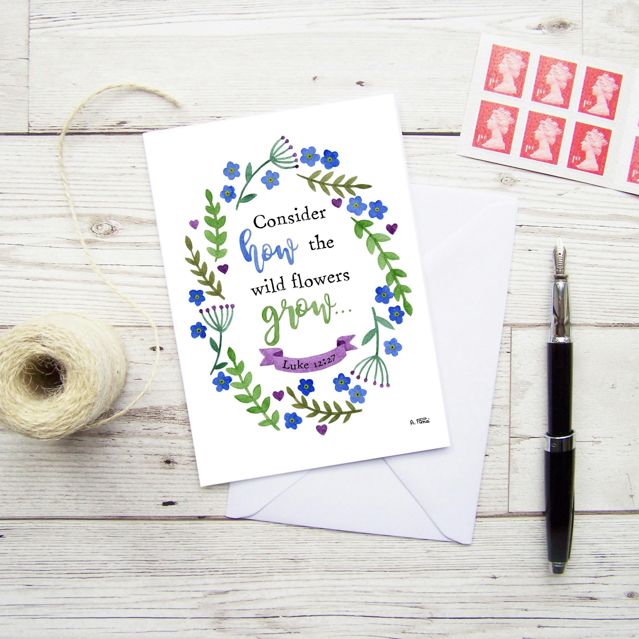 Consider how the wild flowers grow (Luke 12:27) - Greetings Card