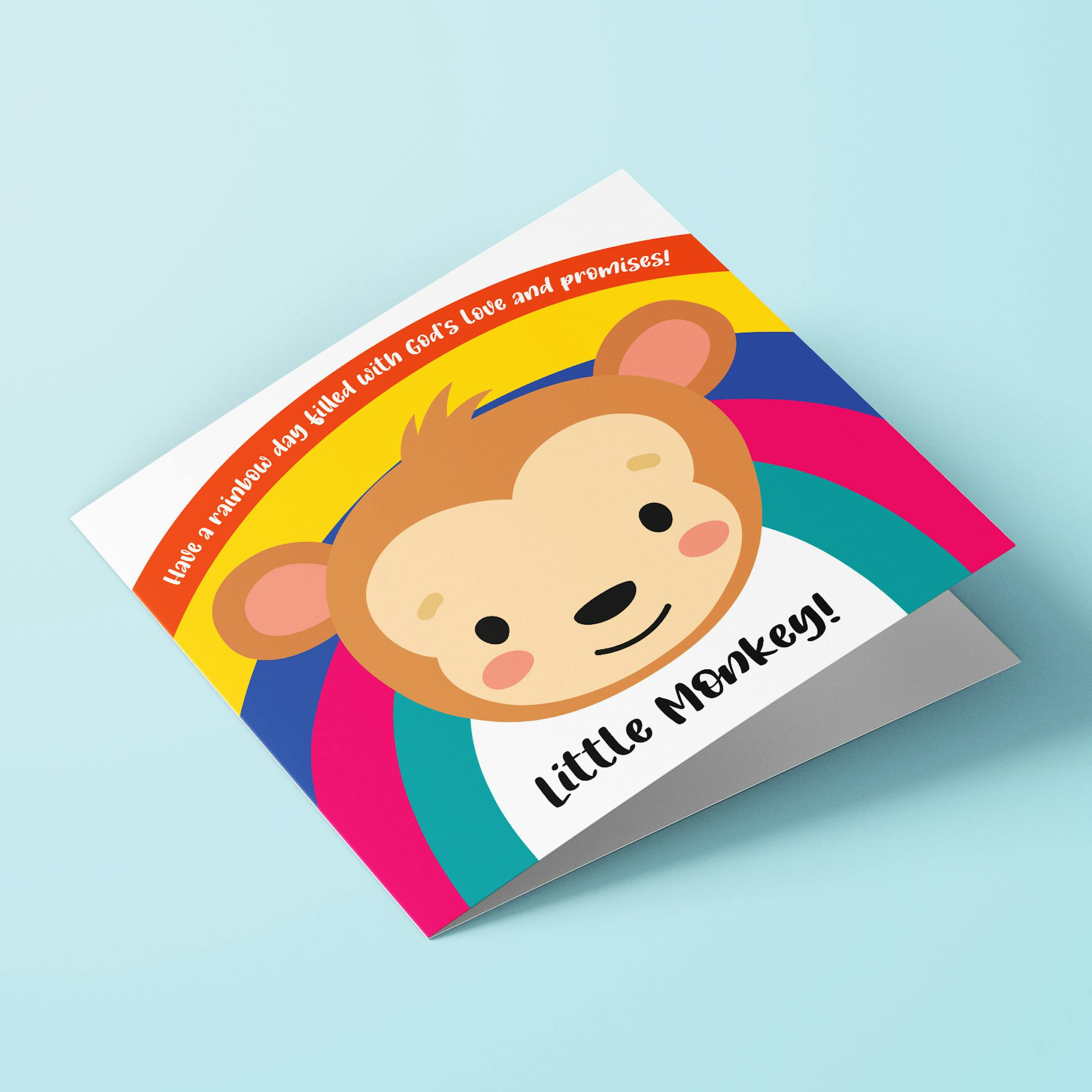 Have a Rainbow Day filled with God’s love and promises - Little Monkey birthday card