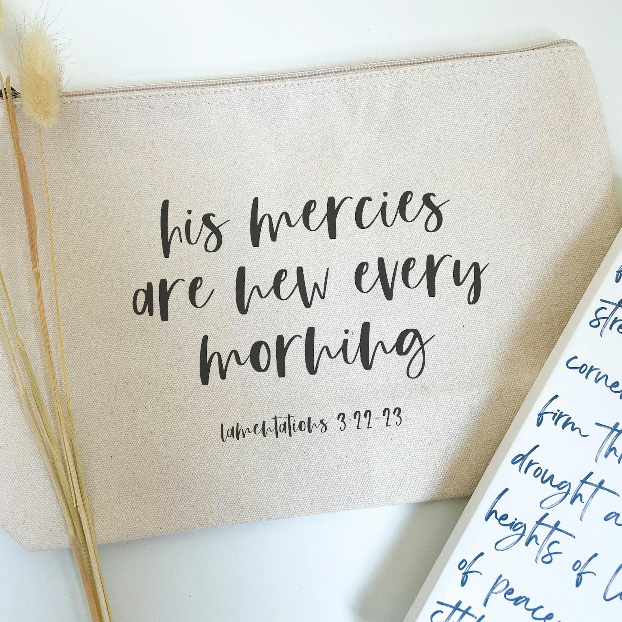 This Mercies Are New Every Morning zip pouch makes a great pencil case or cosmetics bag.