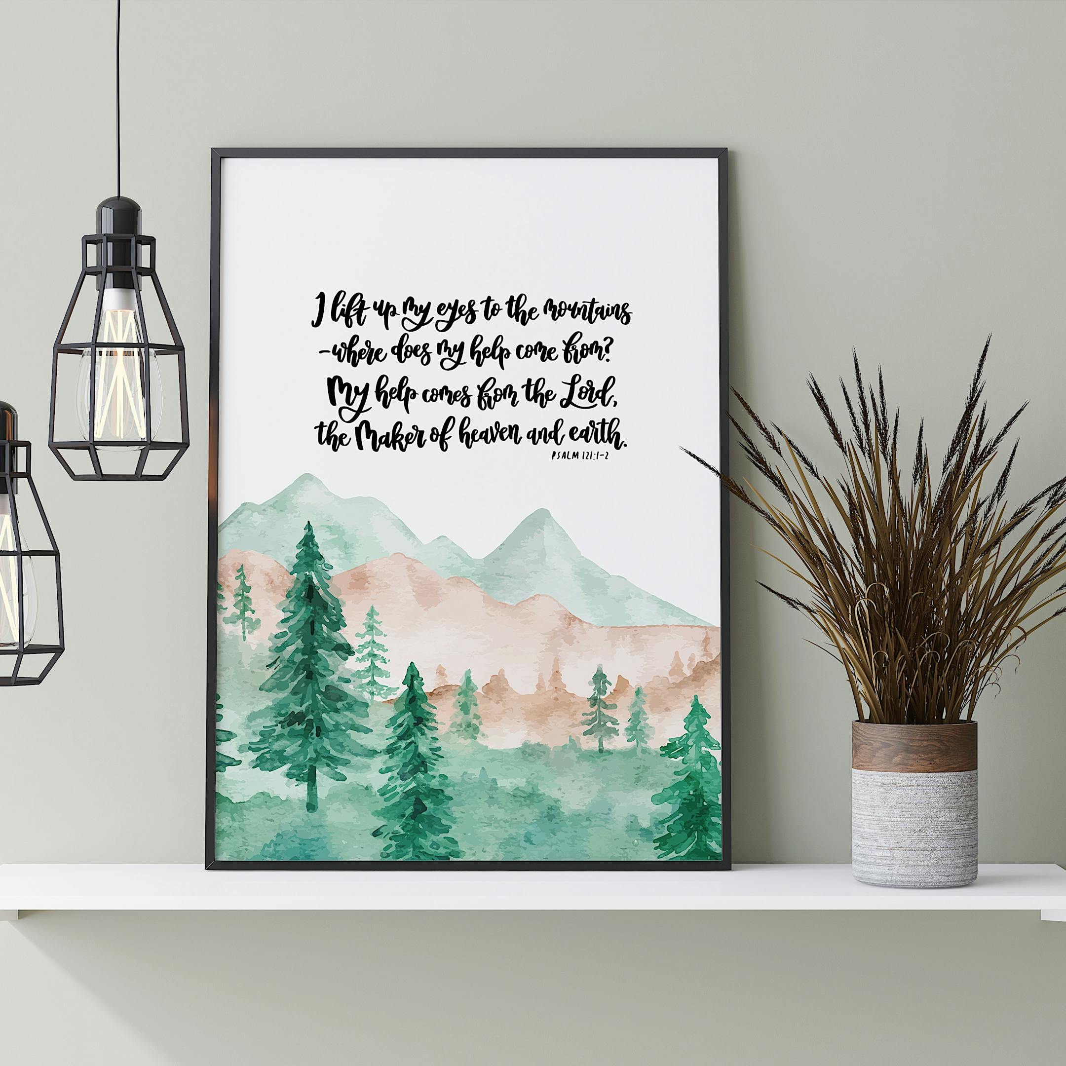 This hand-lettered calligraphy print, features the powerful verses from Psalm 121: 1-2.