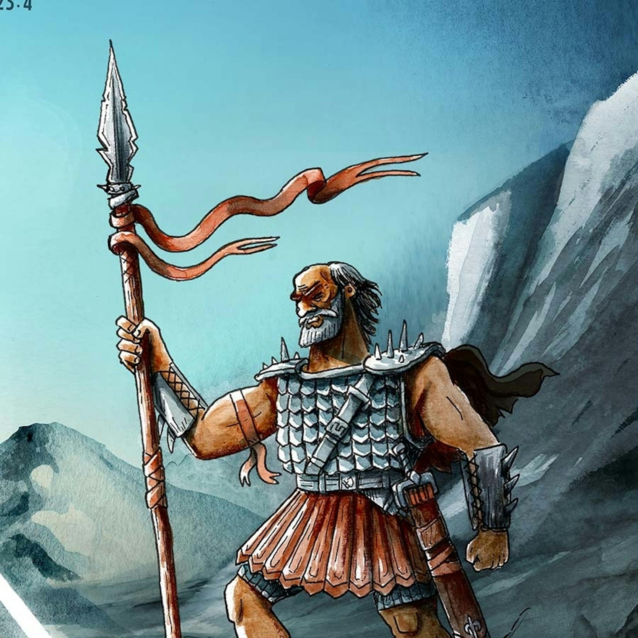 I will fear no evil for you are with me, Psalm 23:4. Illustration showing the battle between David and Goliath with Jesus Rod going before him.