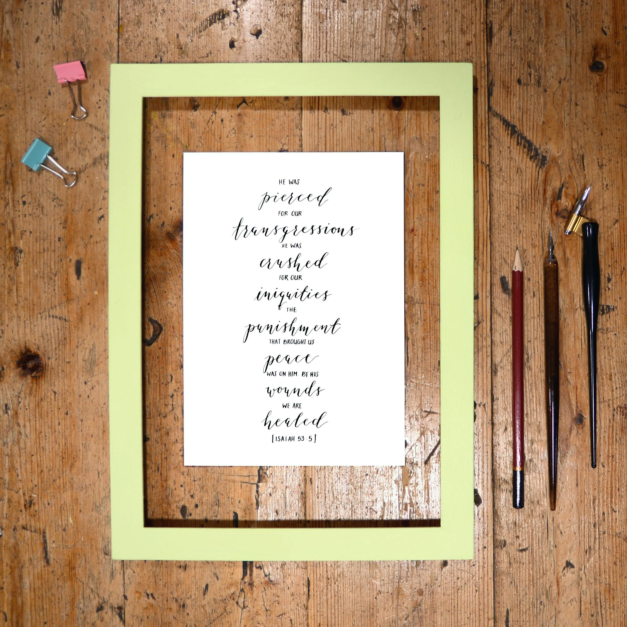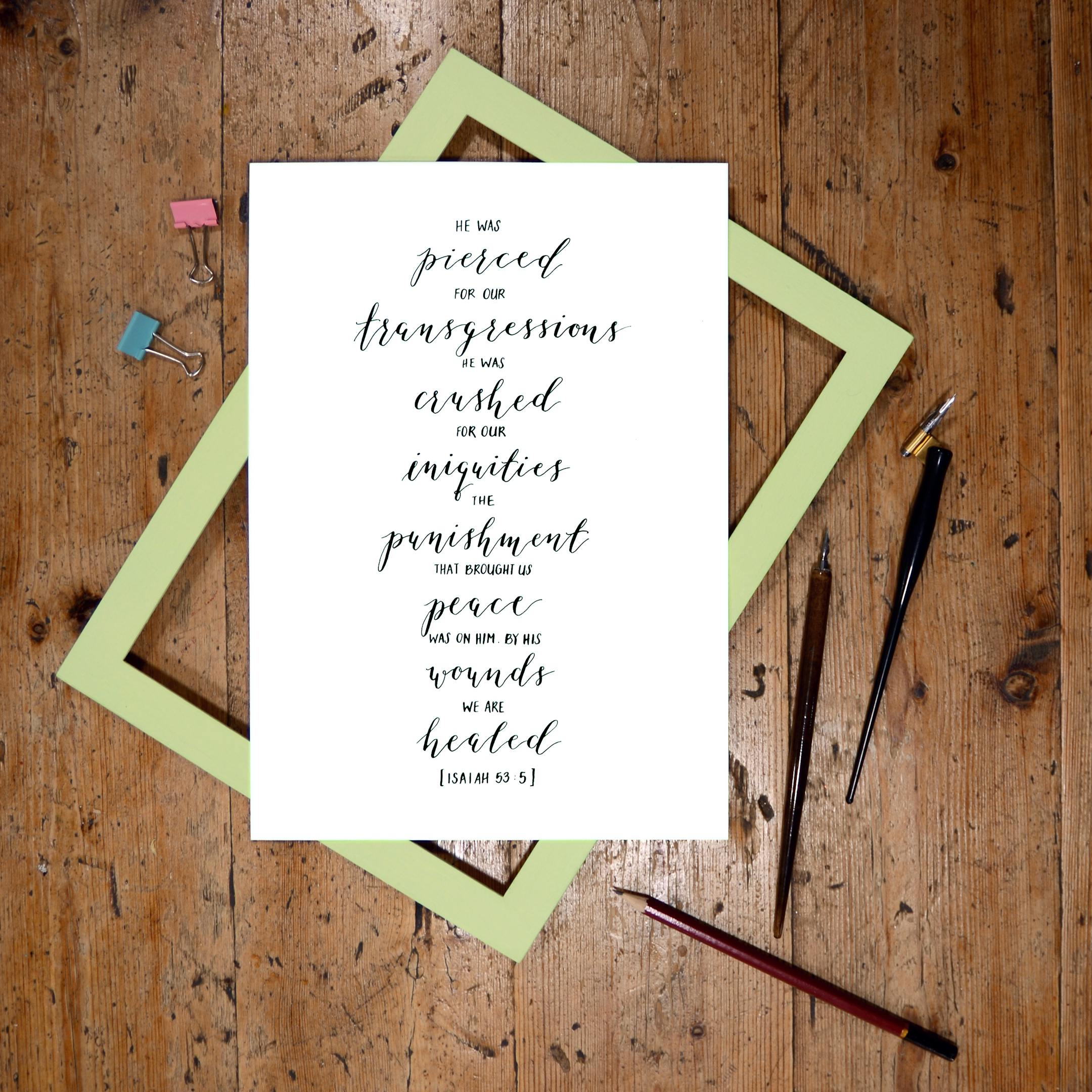 Isaiah 53:5 'By His Wounds' - Modern Calligraphy Bible Verse Print