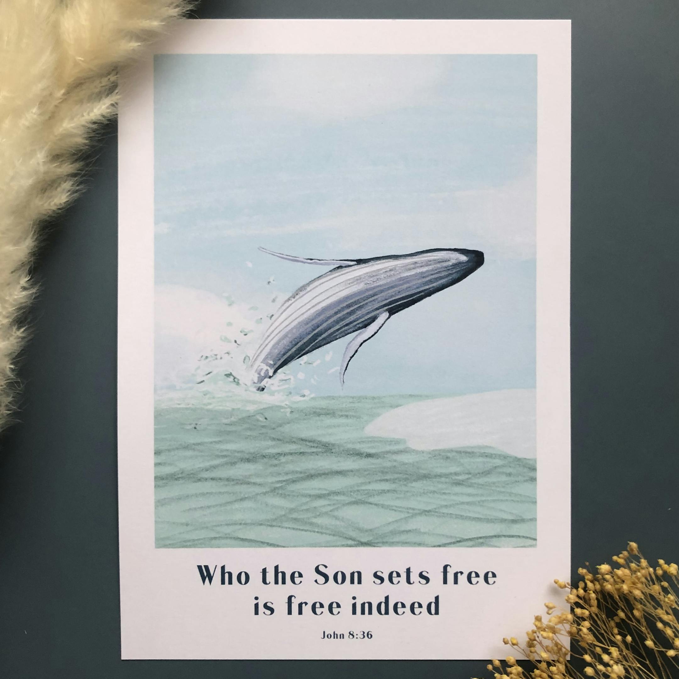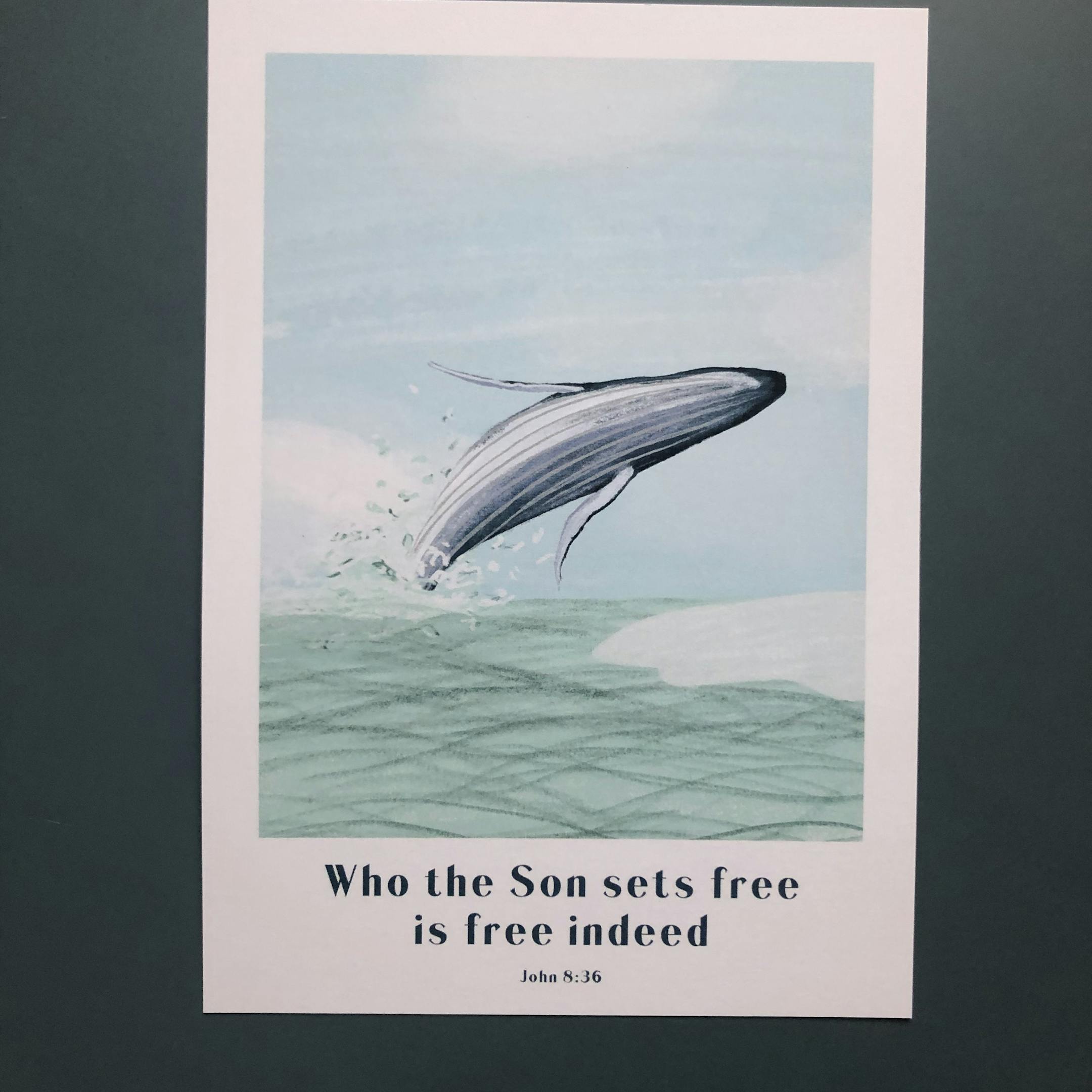 This whale print is an encouraging gift or perfect reminder for your home, that we are free in Him.