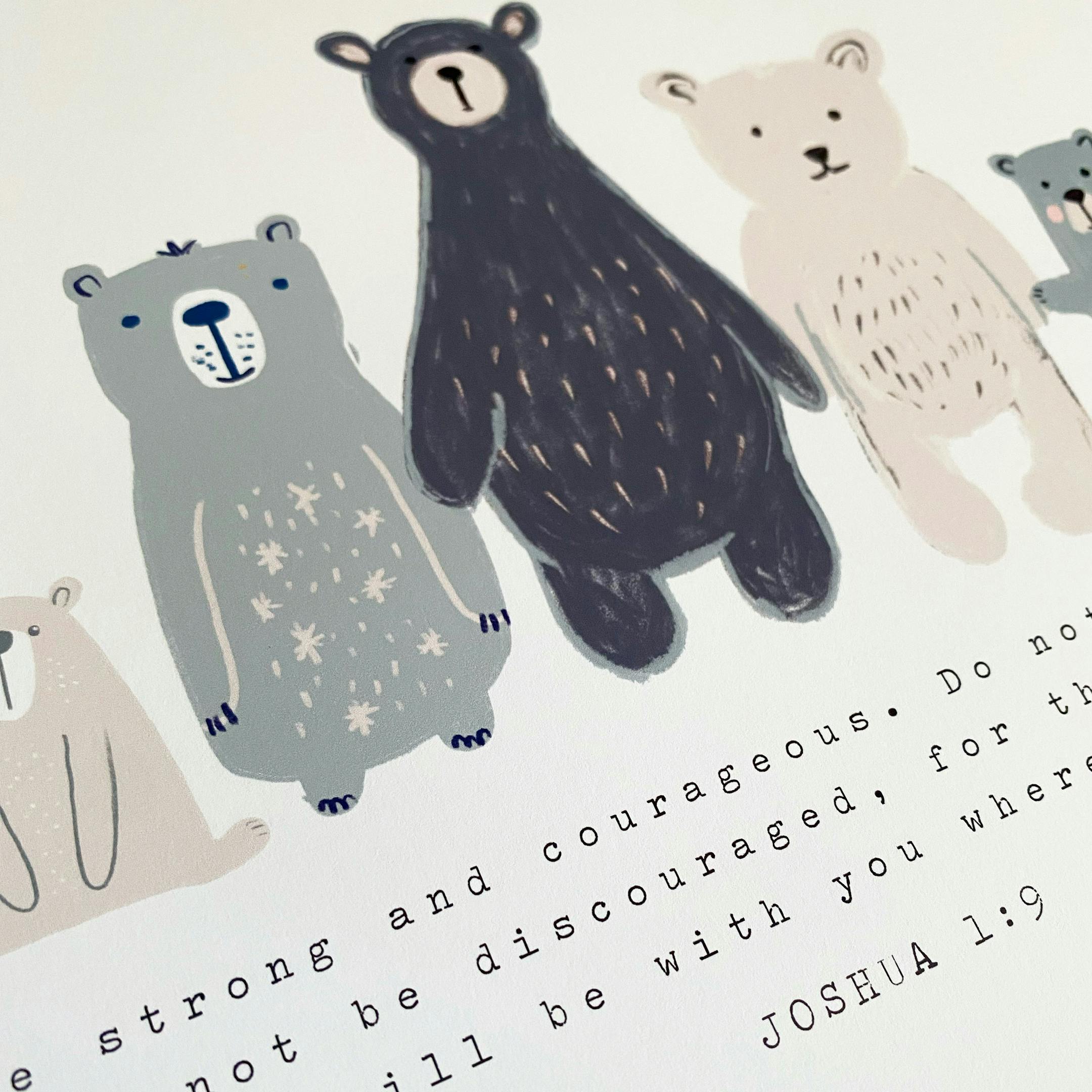 Joshua 1:9 Children's Bear Illustration Print - FREE UK DELIVERY