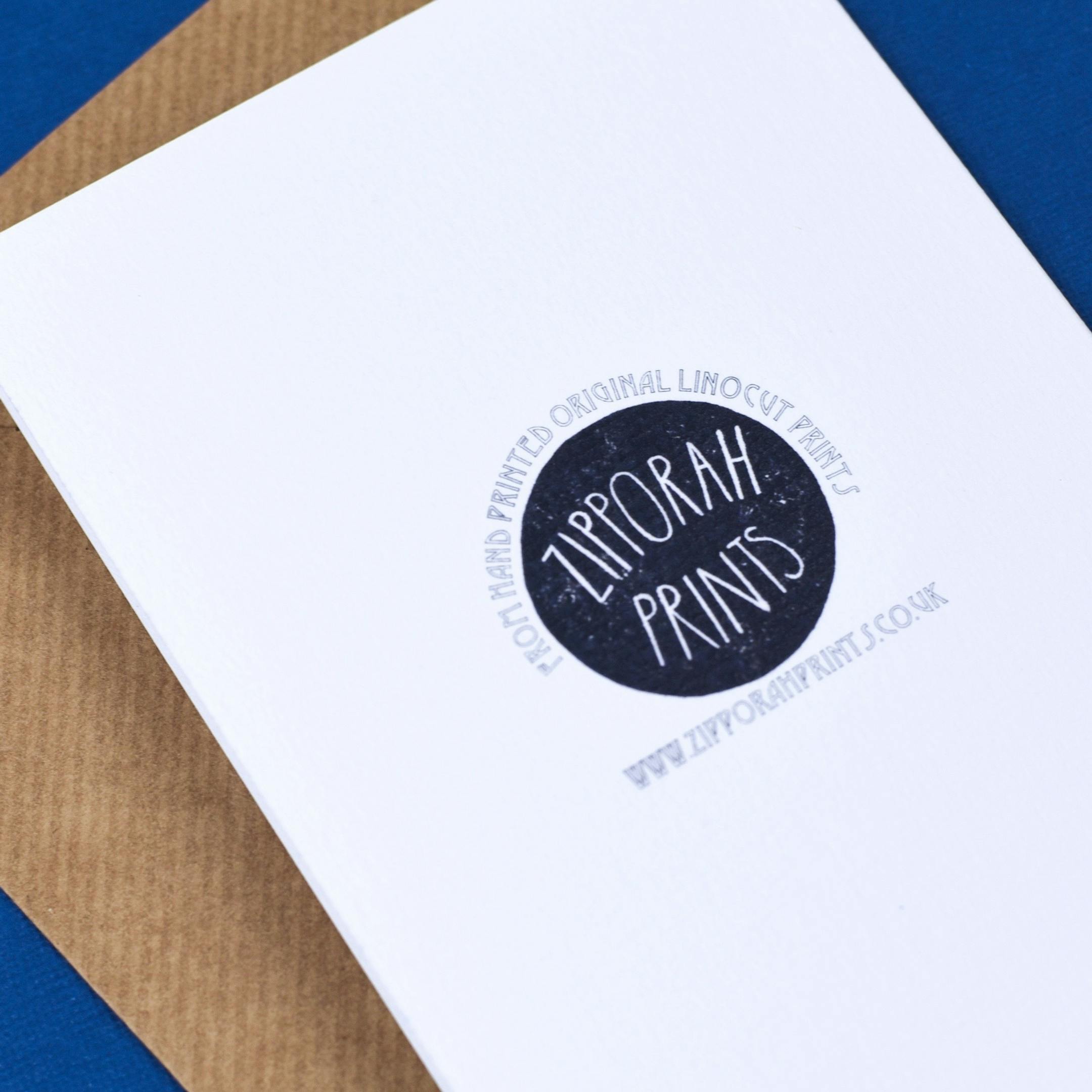 This A6 greetings card reads 'Joy To The World' set within a festive mistletoe wreath. This item has been created from a hand made original linocut print. Each print has been designed by Zippy & hand made in her studio in Surrey. Once happy with a hand printed linocut design, Zippy gets her cards digitally printed by a local printers on beautiful textured card ensuring that the wonderful hand printed qualities of the original remain intact.