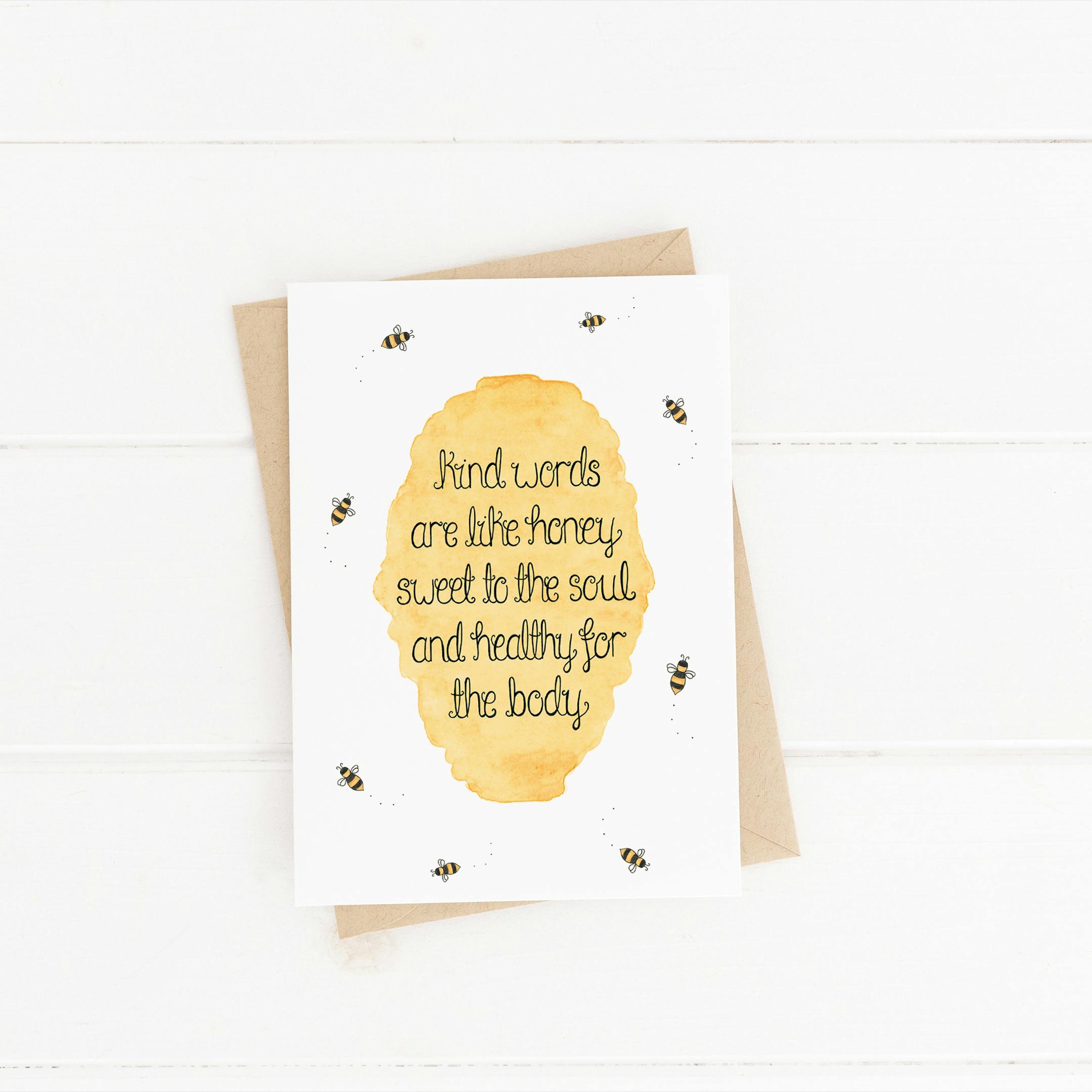 Kind words are like honey - Proverbs 16:24. This lovely bee illustration greeting card would be a lovely to fill with encouraging words and bless a friend with.