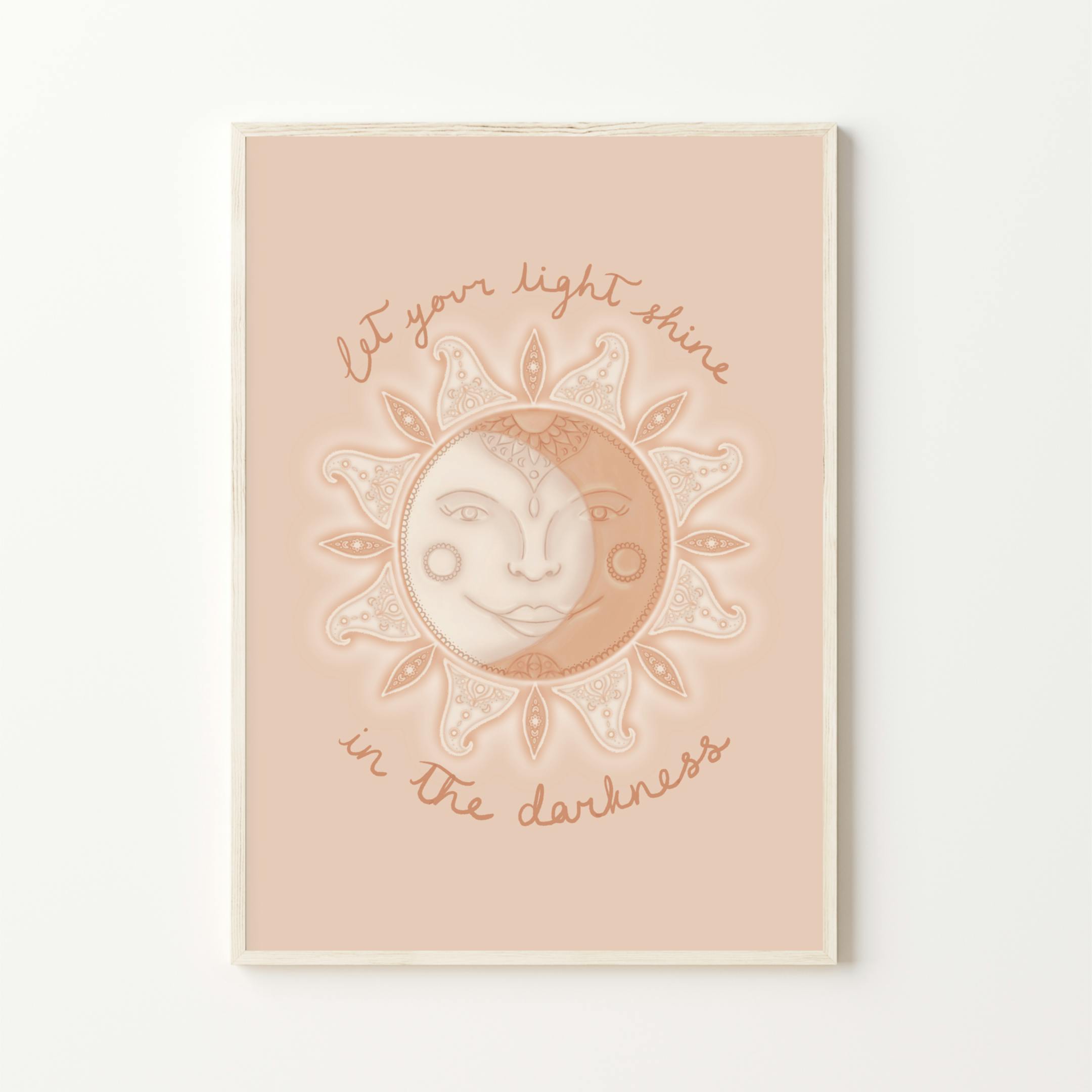 Let your Light Shine in the Darkness | 2 Corinthians 4:6 | A6, A5, A4 & A3 Print | Boho Celestial Sun and Moon Print