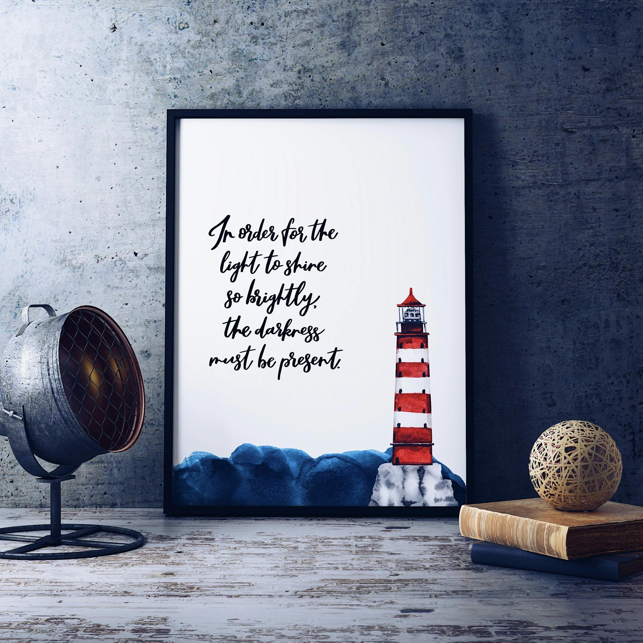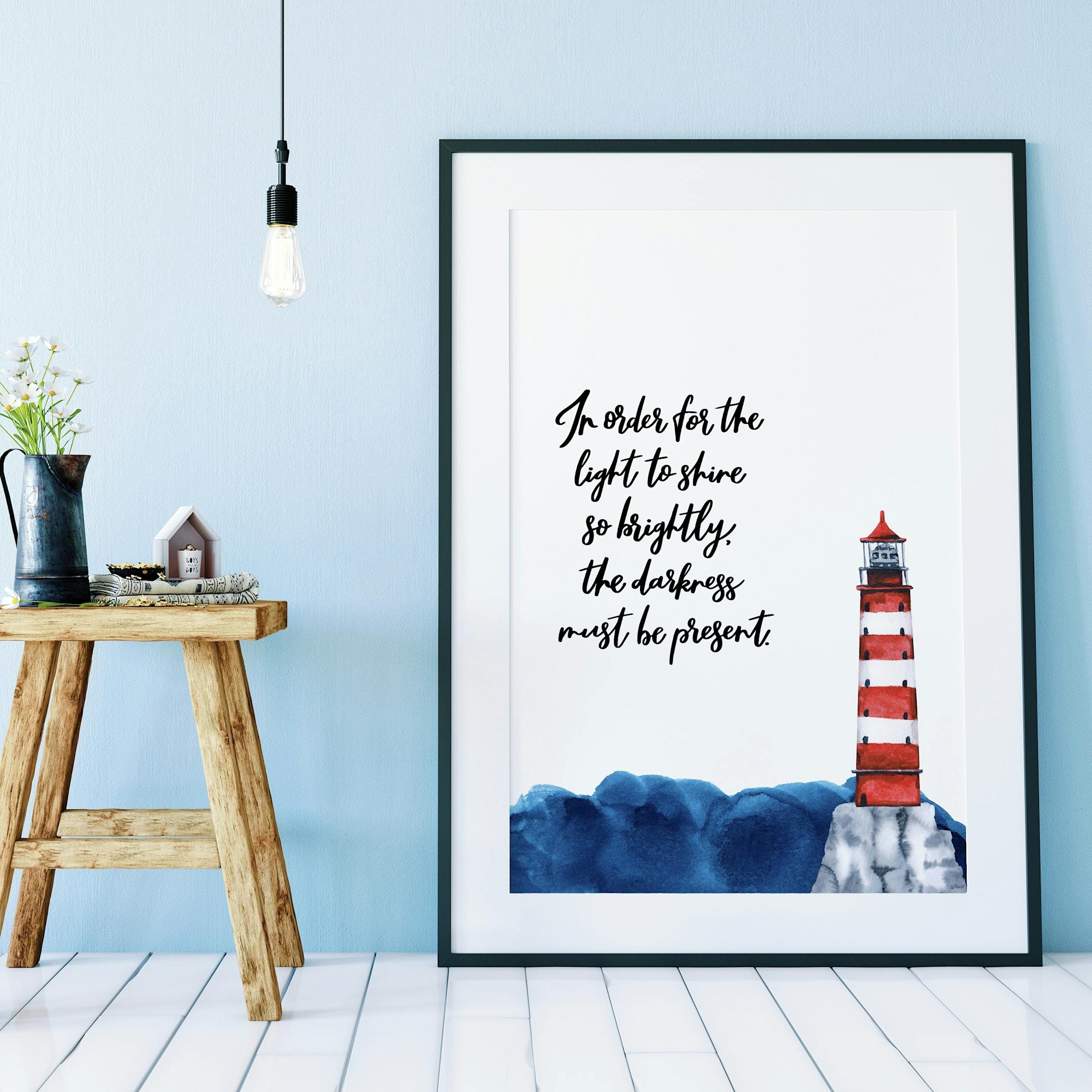 This calligraphy print features an awesome ocean-inspired inspirational quote. The hand-lettering is complimented by the watercolour lighthouse, ocean and sea gulls. Our ARCHIVAL prints are available in a variety of sizes. Please choose your preferences from the drop-down menu.