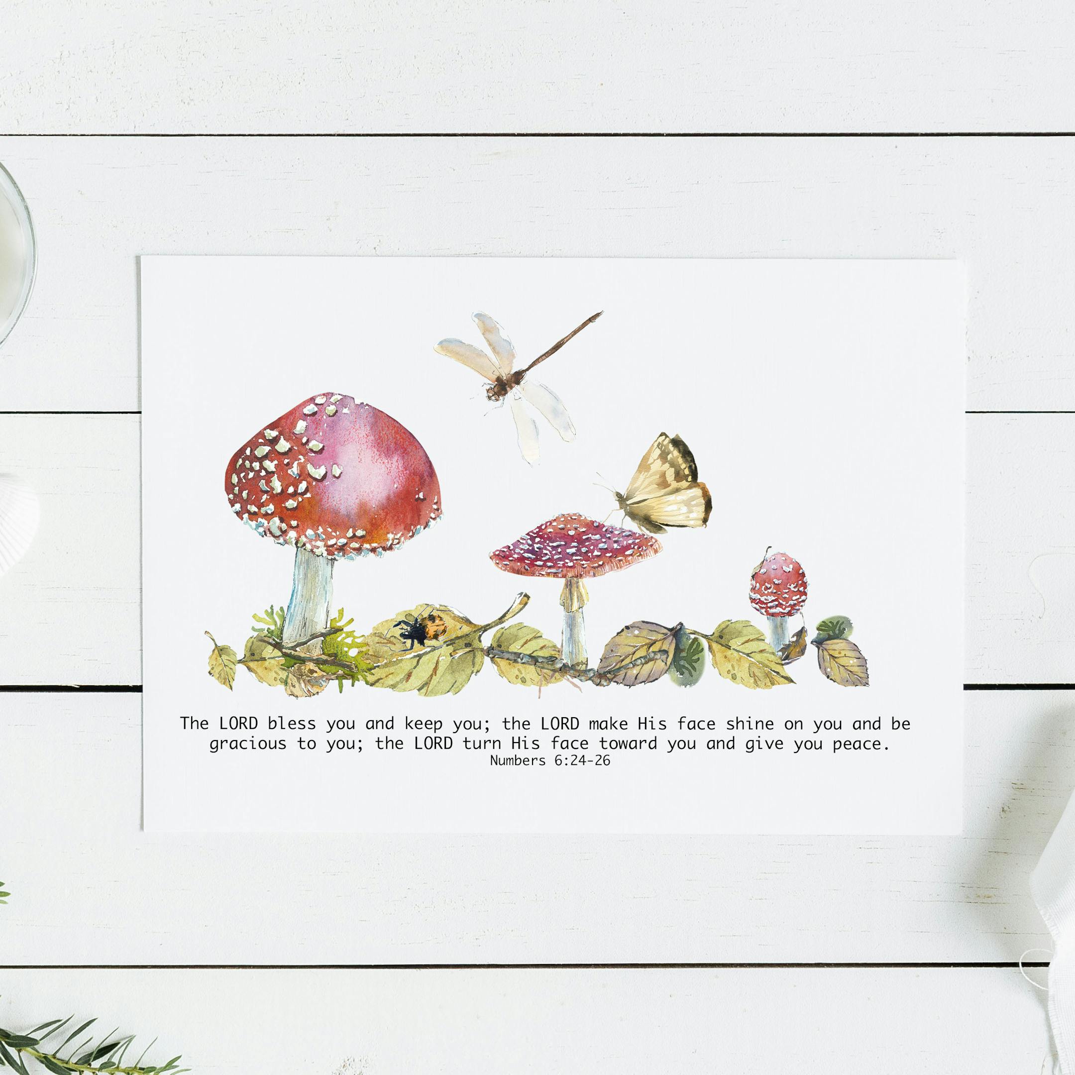A gorgeous Art Print featuring a lovely woodland scene together with the Aaronic blessing from Numbers 6:2-26.
