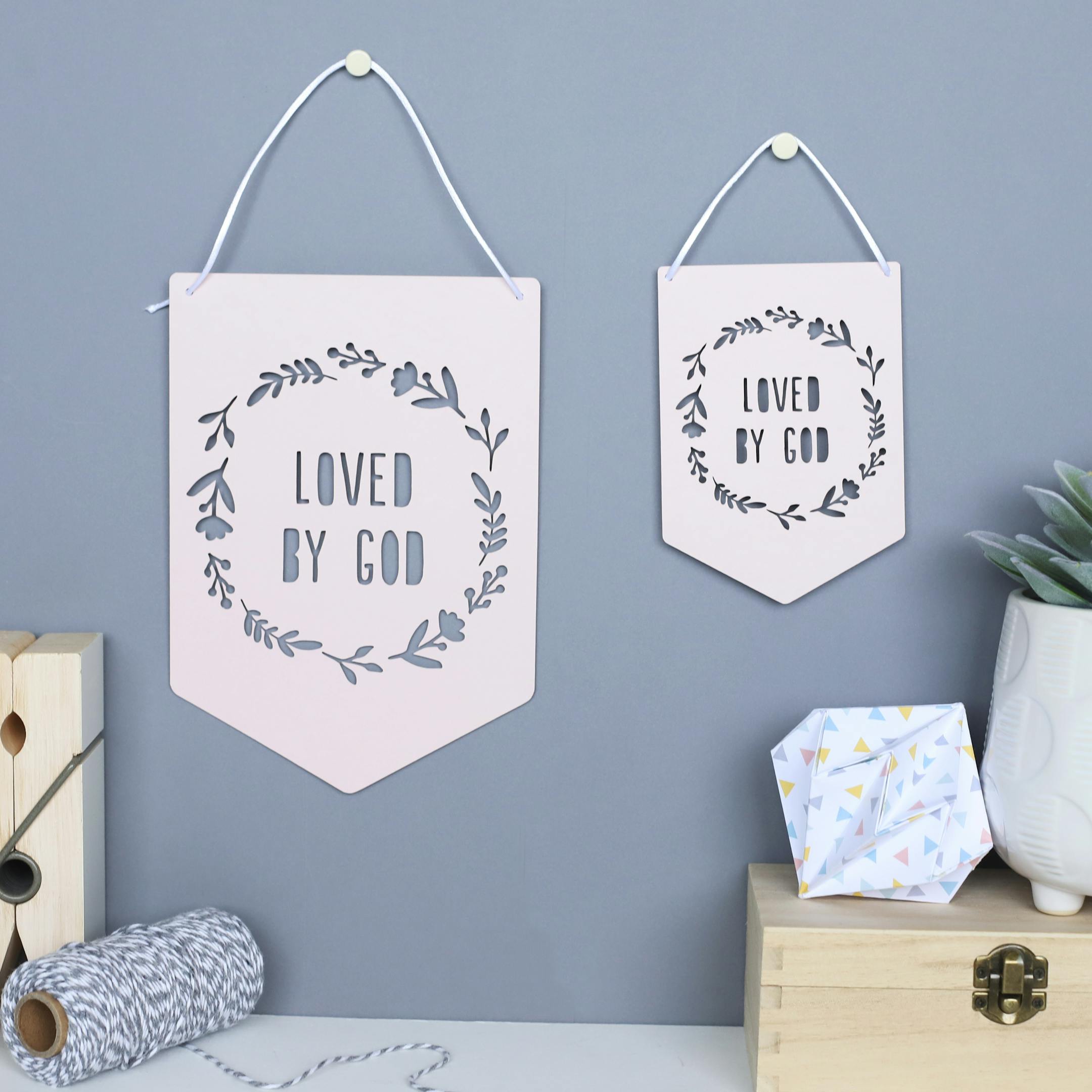 This cute "Loved by God" flag is a beautiful reminder of our identity in God. It is perfect wall decoration for any nursery or as a gift for a new baby.