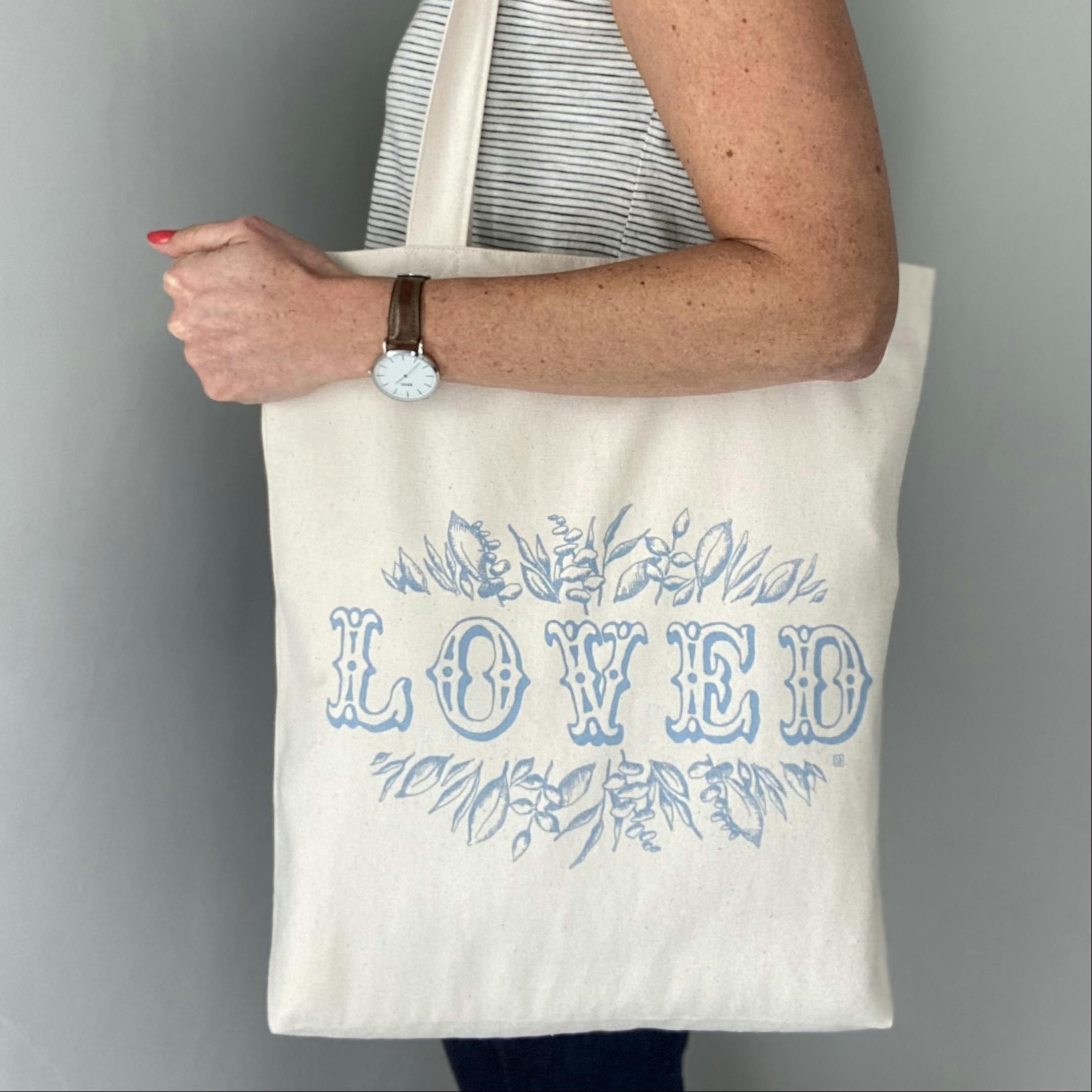 These Loved bags feature hand designed artwork, and are 100% recycled. They are made from heavyweight fabric which will keep even your heavier books safe, and will roll up neatly to be kept for those unplanned trips to the shops.