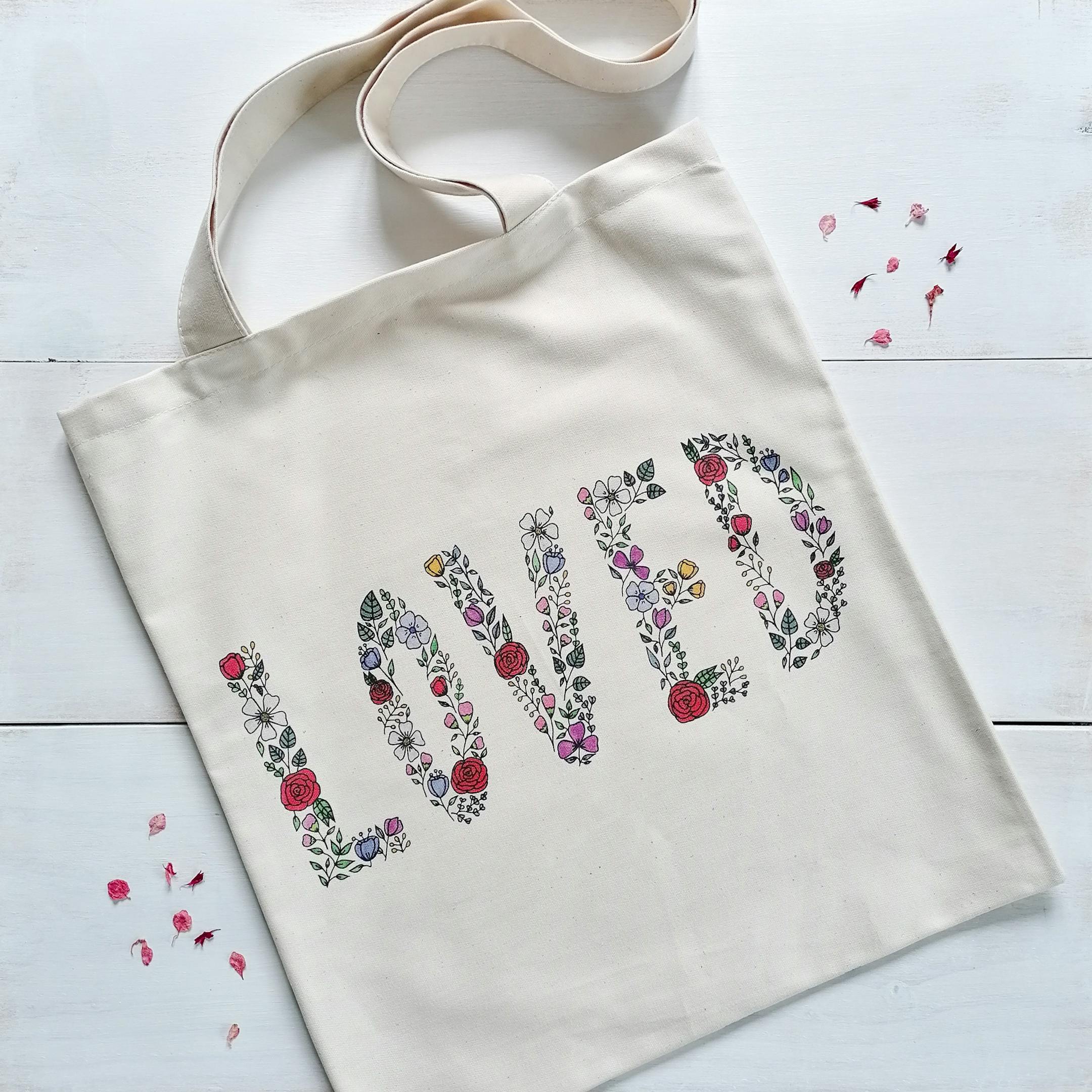 This beautiful floral worded LOVED tote bag would be perfect to take out on shopping trips and to carry your belongings around in. Whether a treat for yourself or a gift for a friend, this bag will remind its owner and the people around them that they are loved.