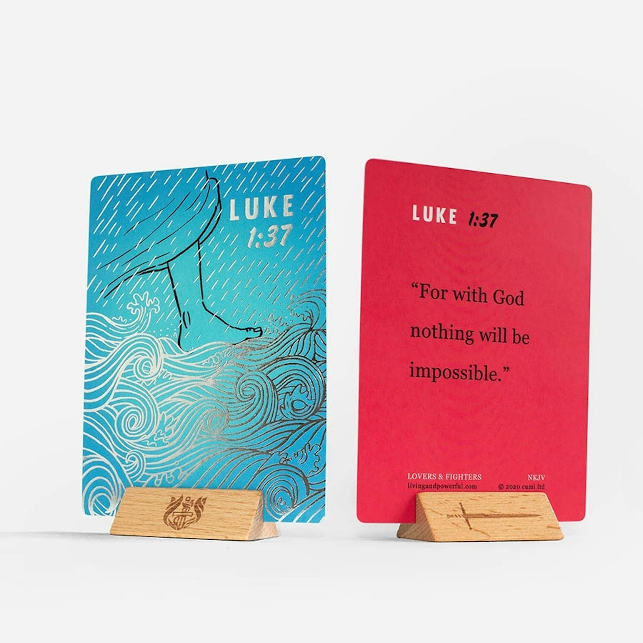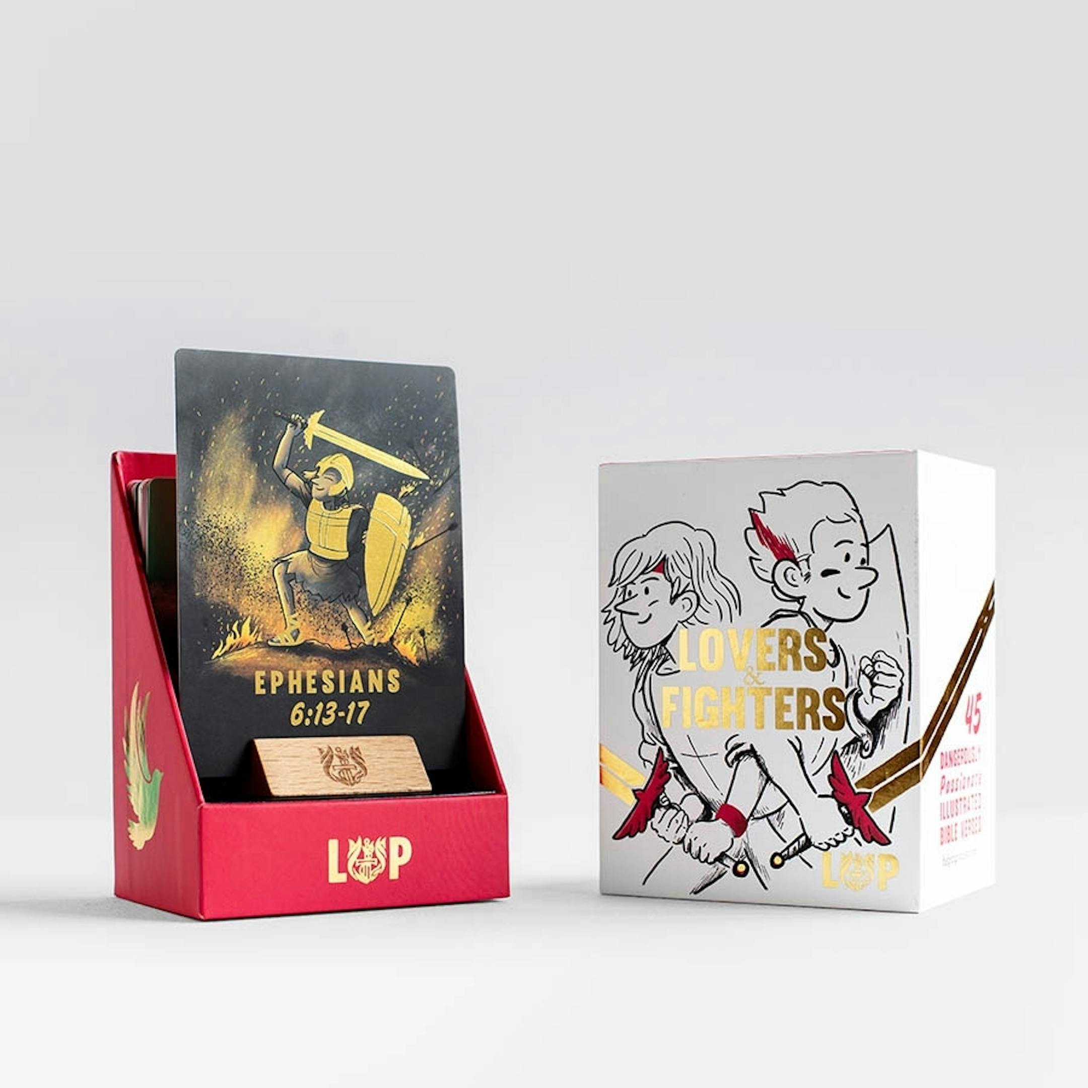 Lovers & Fighters - 45 Illustrated Bible Cards and stand - Christian gifts that give courage - spiritual warfare, christian gift, birthday, christening, baptism, scripture cards, verse cards