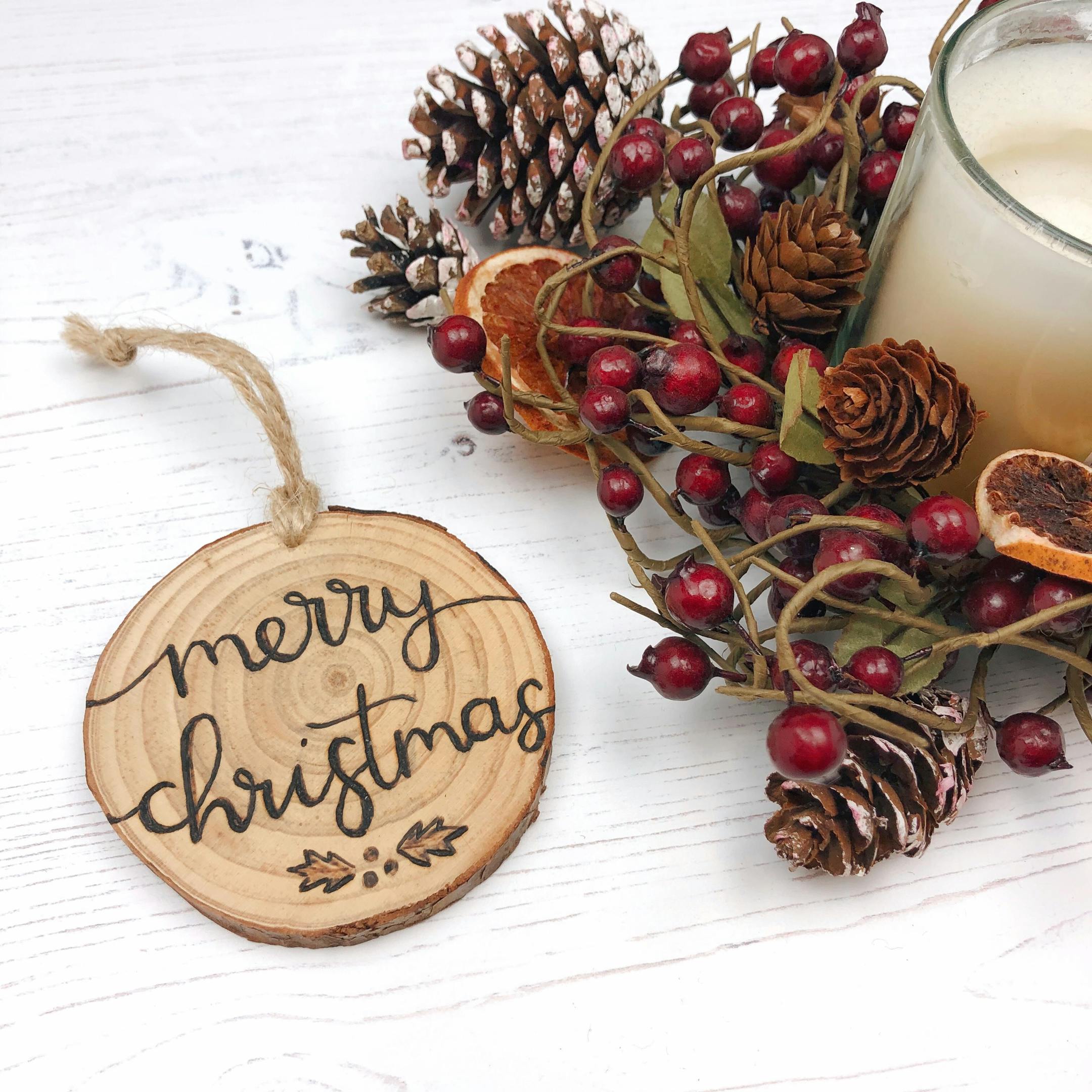 Merry Christmas Wood Slice Decoration