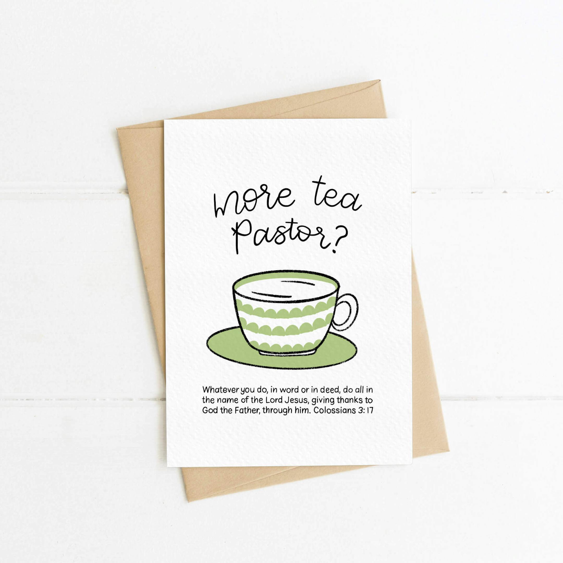 More Tea Vicar/Pastor/Minister/Rev Ordination Card | Colossians 3:17 (your choice of title)