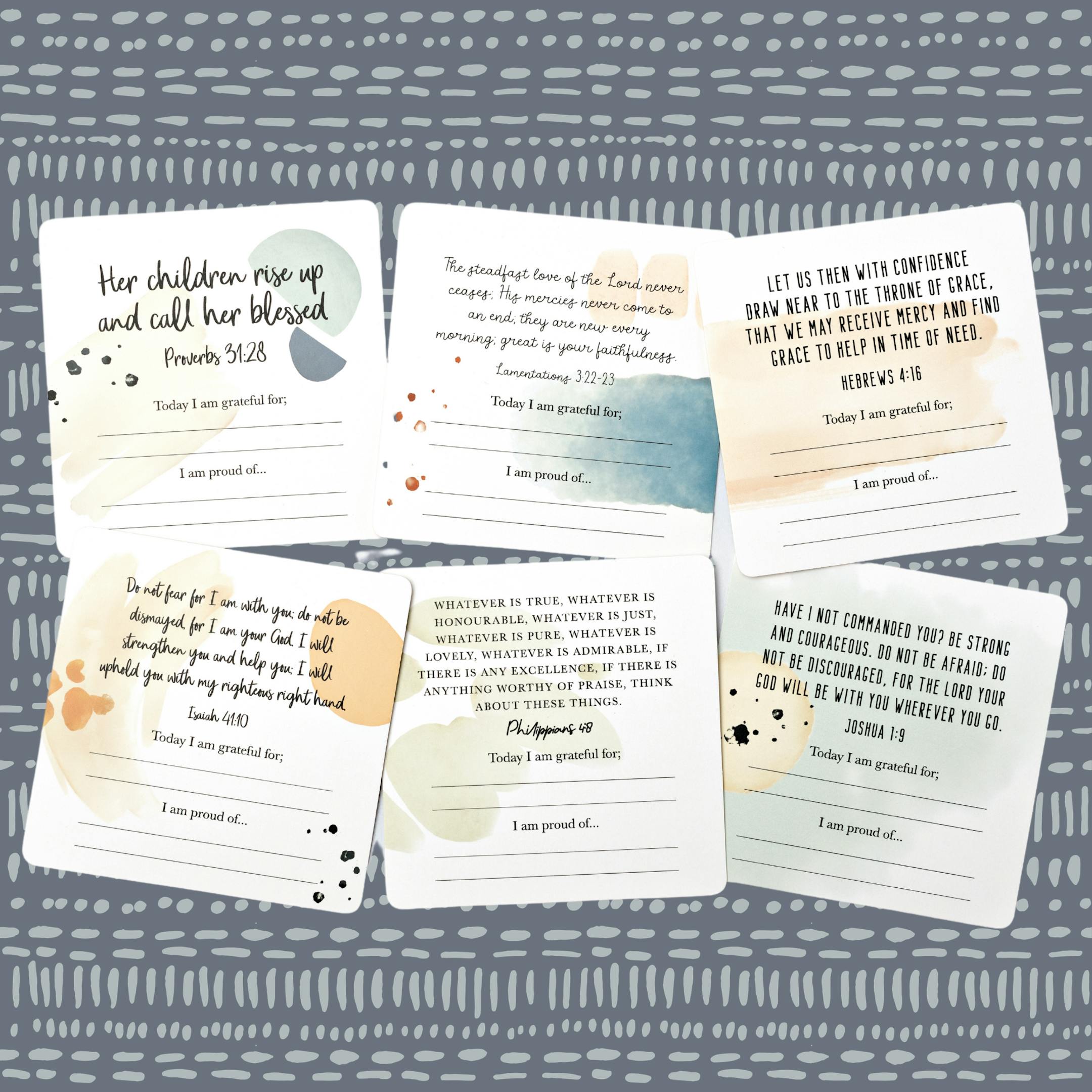 This motherhood affirmation collection is designed to connect your inner dialogue with God, remind you of His promises and help keep you focused on your identity in Christ. The front of the cards displays a reminder or affirmation and the reverse is paired with a scripture and journaling space. This space is to recall what you’re grateful for and what you’re proud of, because even on the toughest days, there’s always something. Momma, you’re stronger, braver and more capable than you know and you’ve totally got this!