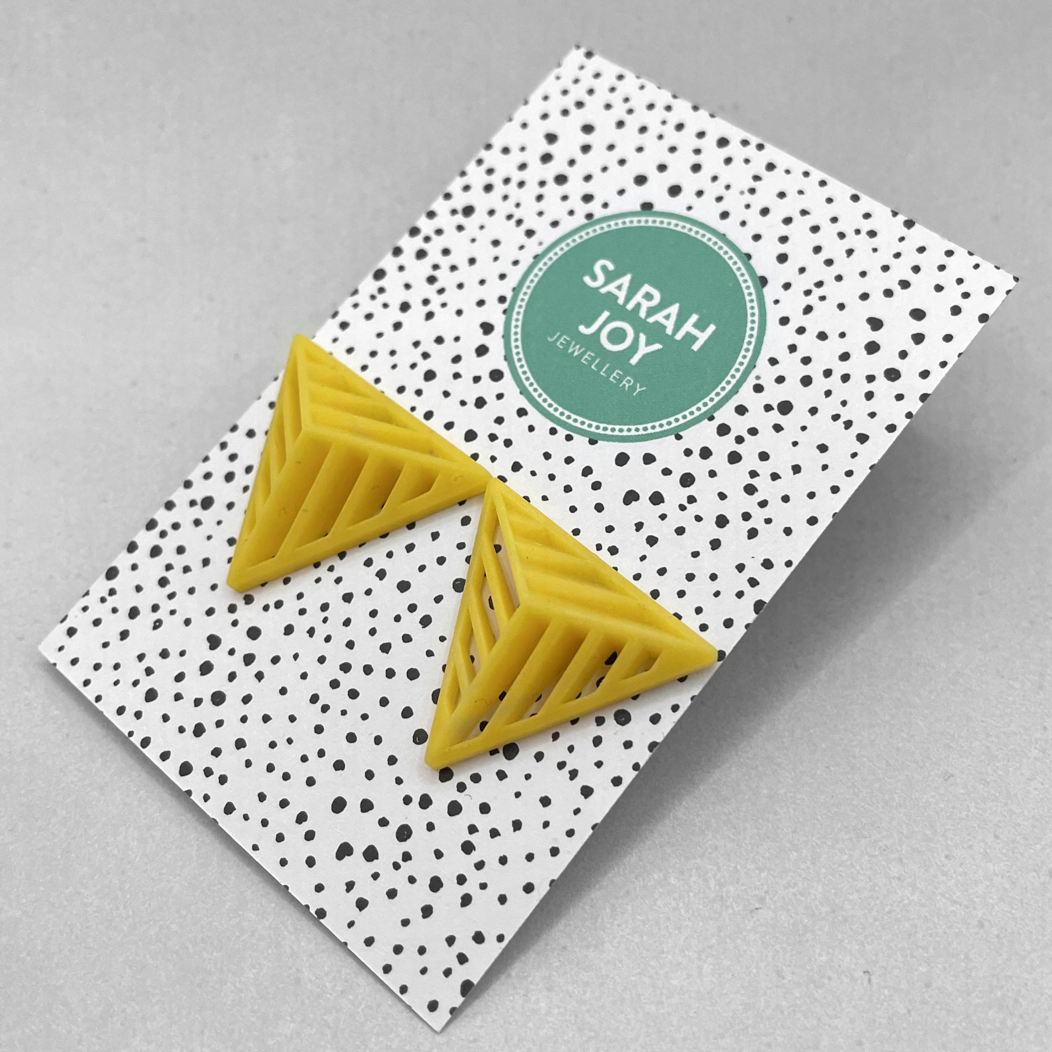 Colourful geometric jewellery 3D printed in plant-based resin. Designed and made in the UK.
