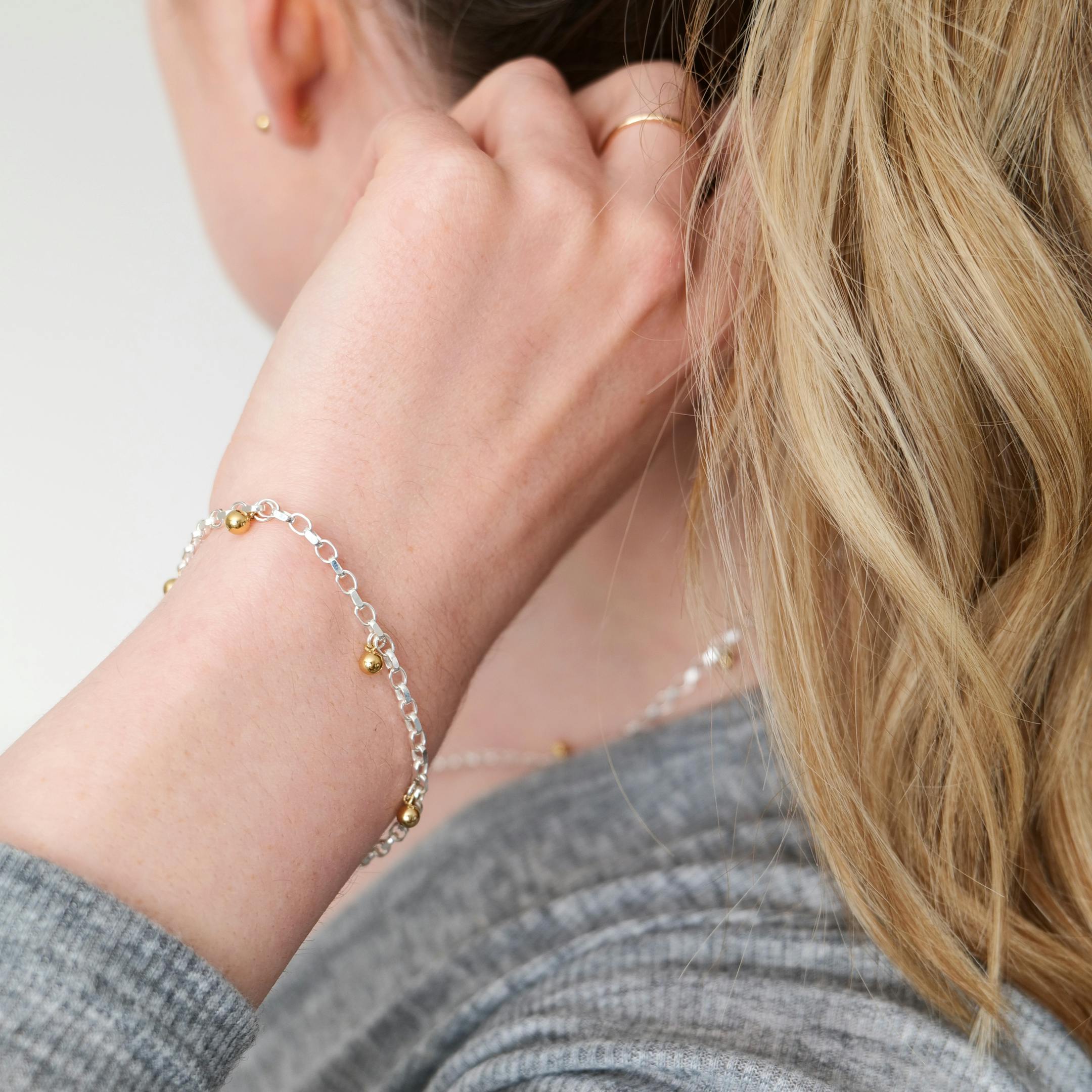 The Mustard Seed Bracelet is a beautiful addition to my Mustard Seed Collection, inspired by the words of Matthew 17:20-21. This distinctive bracelet is crafted from a chunky diamond-cut base chain, featuring five 'mustard seed' charms spaced along its length. Recycled sterling silver meets the warm, buttery tones of gold-filled ‘mustard seeds’, creating an effortlessly stylish mixed metal look.